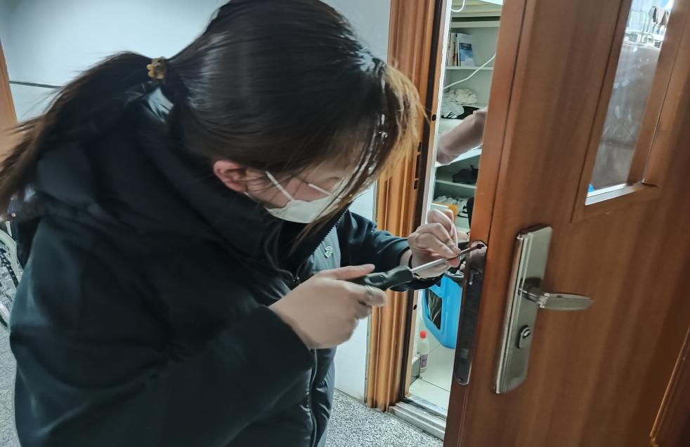 董文卓和王佳在深入到学生公寓检查通风消毒情况过程中,发现5112寝室门锁松旷、开关困难,存在一定的安全隐患。4月7日,董文卓准备了维修汽车的世达工具上门为学生维修寝室门锁,并为寝室同学送去了新拖鞋,及时解决学生的生活困难。