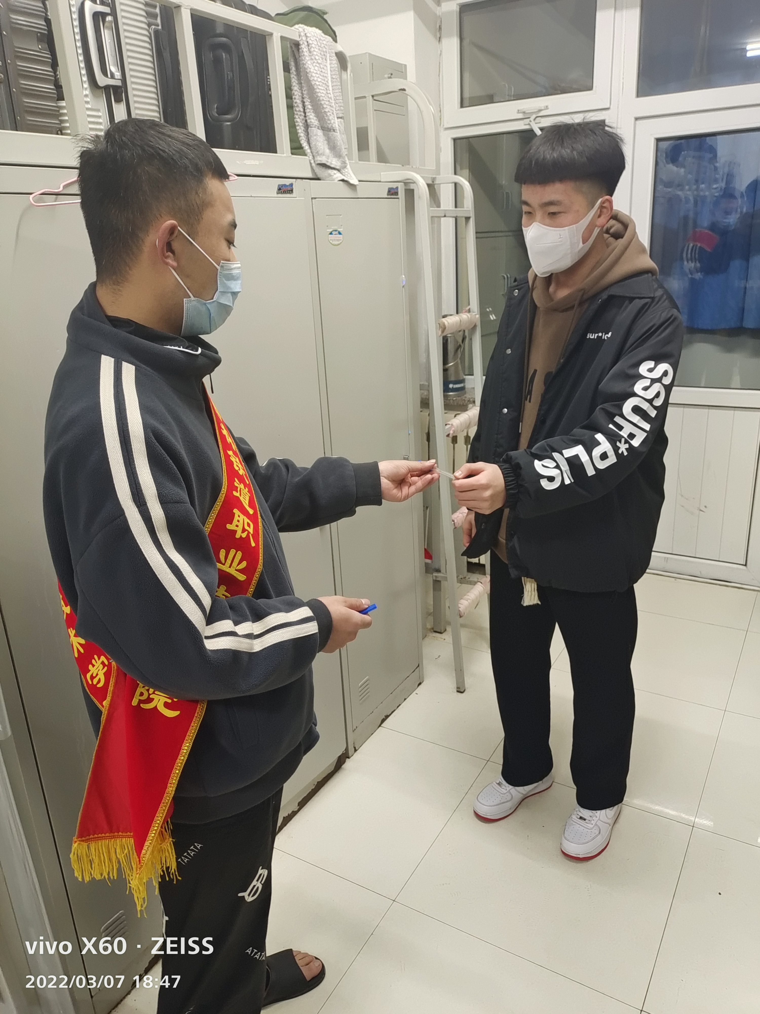 针对各寝室学生体温计损耗情况,经过志愿服务突击队统计后,由指挥部向学校医务所申请了体温计。志愿服务突击队精准发放体温计49个,保证了同学在公寓内的每日测温。