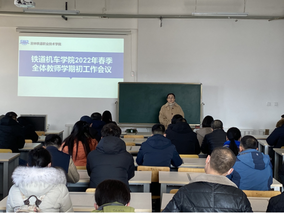 2022年2月25日,铁道机车学院在1号实训楼二楼机械制造设计室召开了2021-2022-2学期期初工作会议,会议由铁道机车学院党总支书记金晶主持,学院全体教师参加了会议。