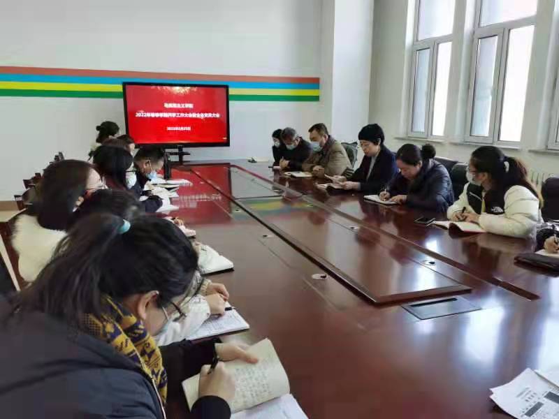 2月25日上午,马克思主义学院在图书馆三楼会议室召开2022年春季学期开学工作大会暨全体党员大会。马克思主义学院党总支书记李彦、院长金宇与全体党员思政课教师参加会议。