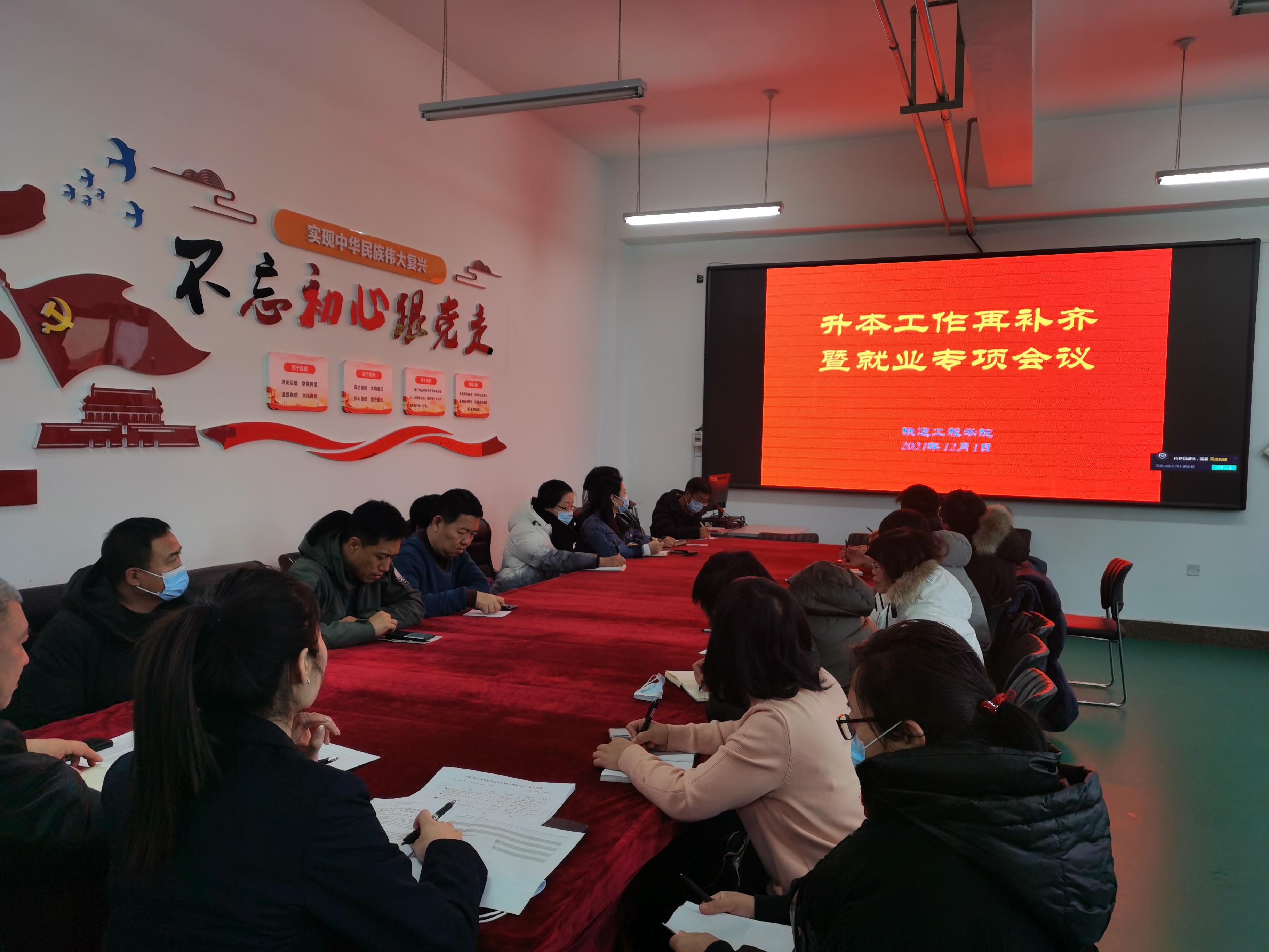 为落实学校就业工作专题会议精神,全力推进毕业生就业,铁道工程学院于12月1日下午召开了升本工作再补齐暨就业专项会议,学院班子成员、教研室主任、全体辅导员以及毕业班班主任参加了会议。