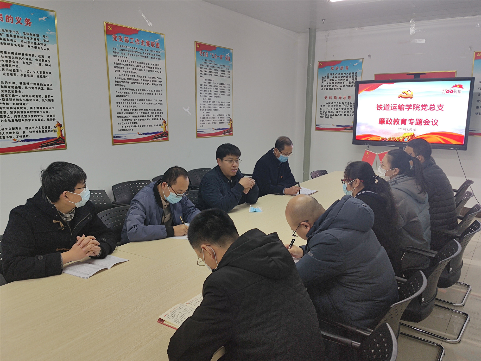 为进一步提升党员干部队伍政治素养,锤炼政治品格,坚定理想信念,坚持原则立场,坚守纪律底线,11月29日,铁道运输学院党总支在党员活动室召开廉政专题会议。全体副科级及以上干部参会,党总支副书记韩阳主持会议。