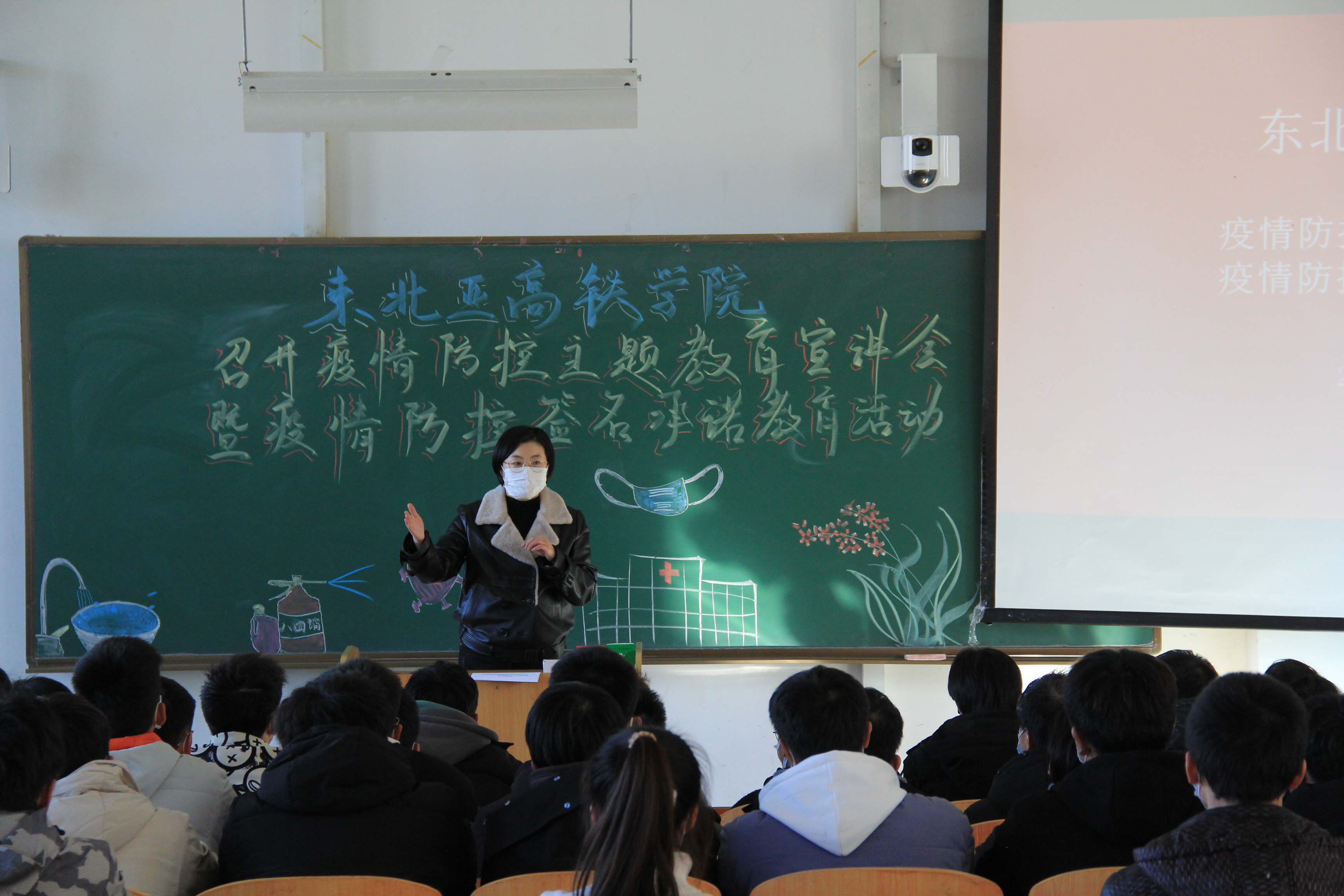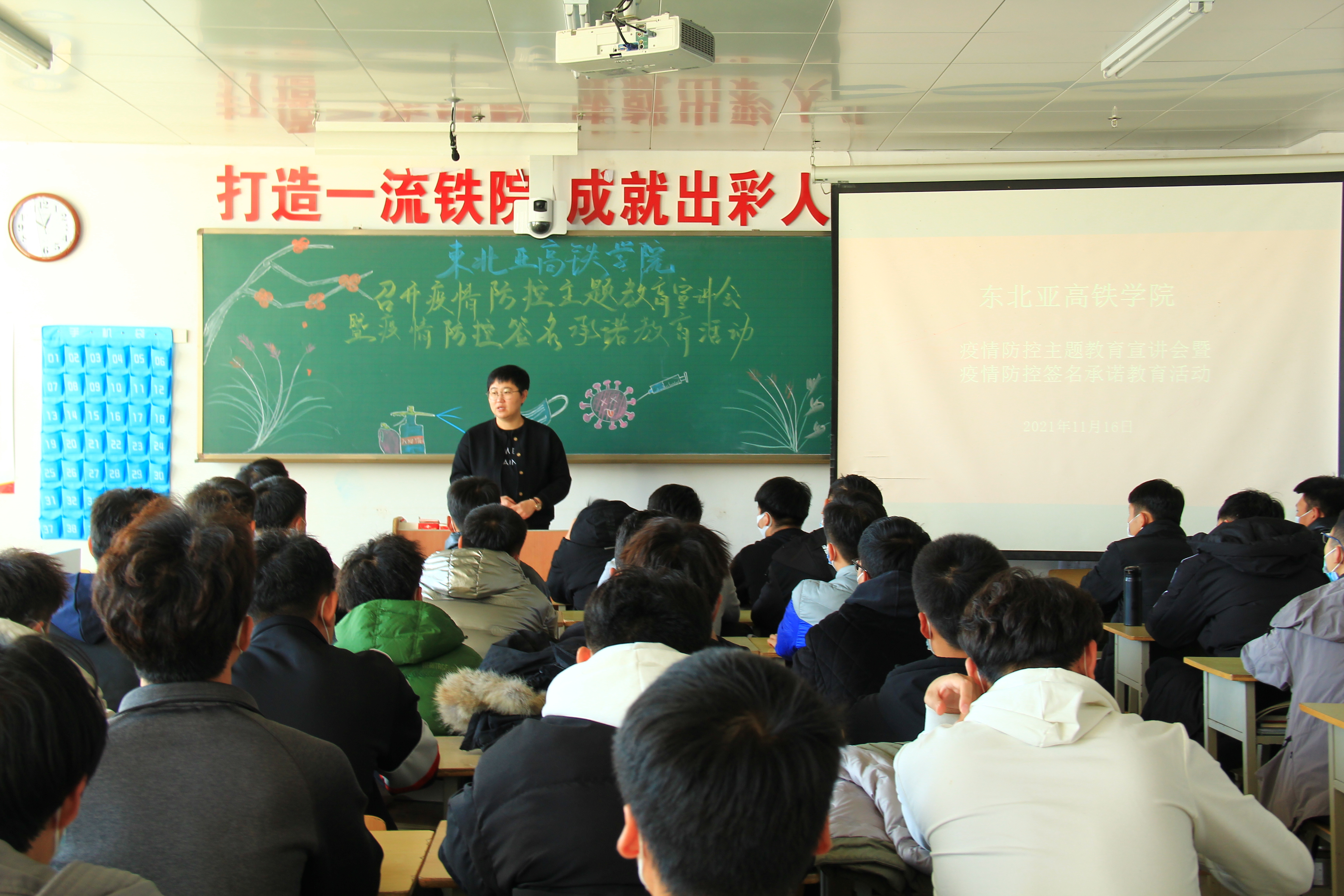 主题教育宣讲会后,学工老师组织全体学生签写了《东北亚高铁学院疫情防控承诺书》。