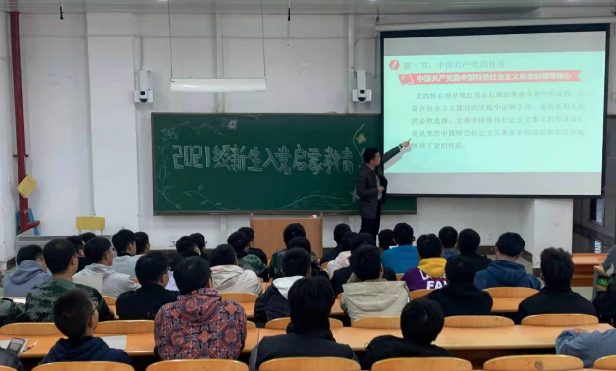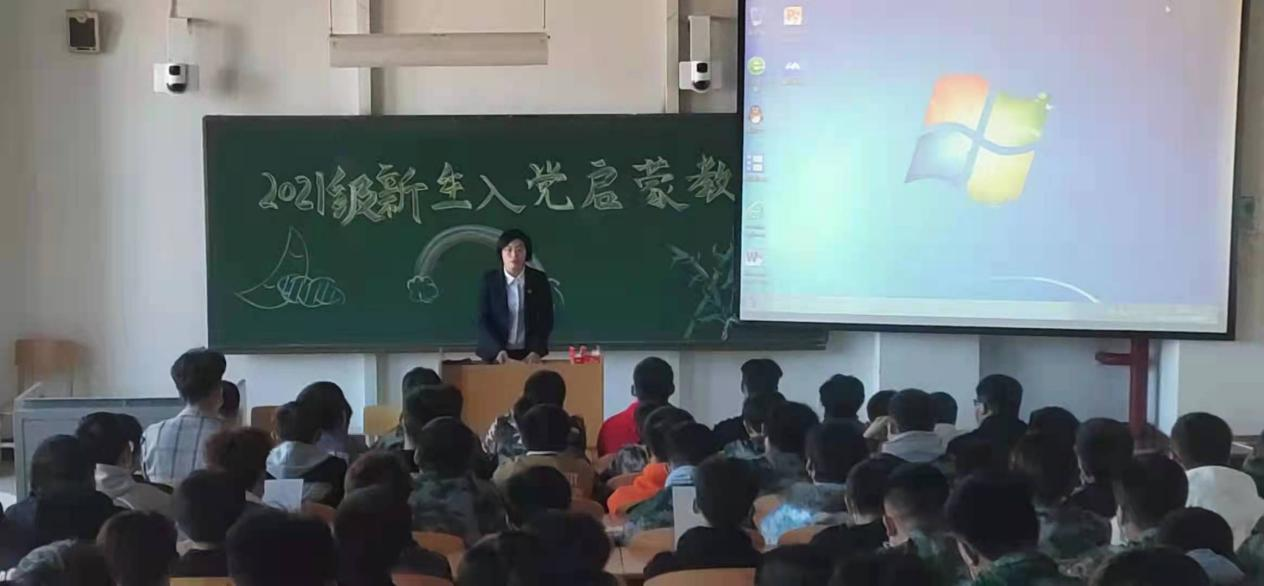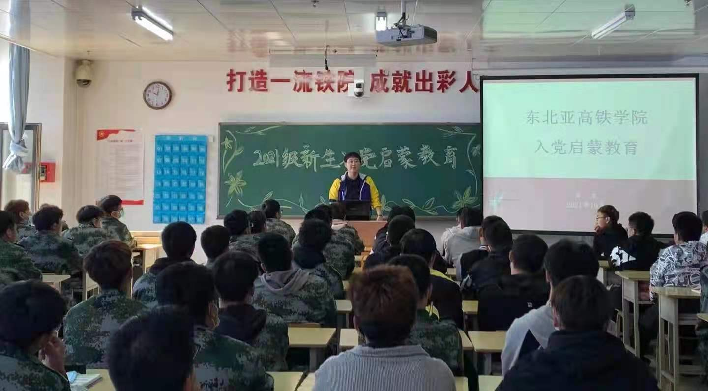 为加深新生对中国共产党的认识,端正入党动机,树立正确的世界观、人生观、价值观,东北亚高铁学院学生党支部坚持以“早启蒙、早教育、早培养、早吸收”的理念,帮助2021级新生扣好人生第一粒扣子,引导学生听党话、跟党走、感党恩,学院于2021年10月14日-15日面向2021级760名新生开展了为期六场次的入党启蒙教育讲座,学院党总支书记于威、党总支副书记李爽、学生工作办公室主任张强担任主讲。