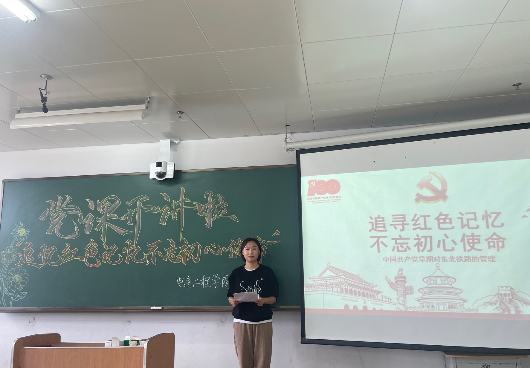追寻红色记忆,不忘初心使命。10月15日,闫瑞雪为学院全体教师讲授了党史专题党课。带领大家学习了党史人物的先进事迹,了解了学校成立的历史背景和重要意义。帮助全体党员在党史学习中汲取智慧和力量,激励大家牢记初心使命、赓续红色血脉。党课结束后,电气工程学院学生党支部全体成员走进吉林铁路博物馆,在讲解员的引领下,逐一了解了以时间脉络、以路徽为印记建成的中东铁路、民国铁路、南满铁路、人民铁路四大展区。进一步坚定了信仰信心,激发了为实现中华民族伟大复兴的昂扬斗志。