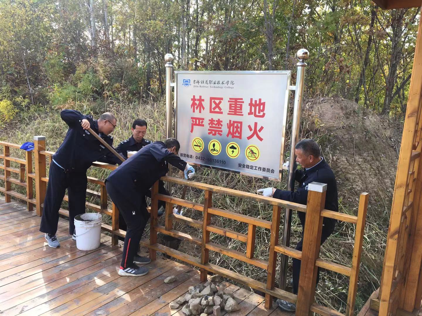 当前,正值秋冬季防火重点时期,为切实保障学校后山林区消防安全,按照安全保卫处党支部党史学习教育活动推进计划安排,10月8日下午,安全保卫处党支部利用党日活动时间,组织全体党员为后山林区健身步道安装“林区重地,严禁烟火”的警示牌及校园交通安全提示牌共8块。