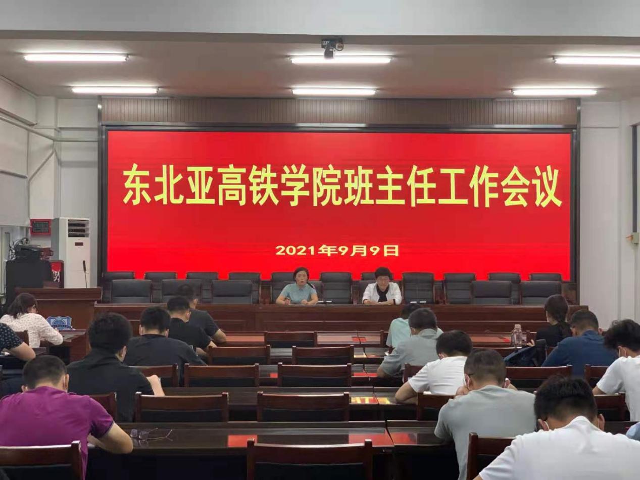 为贯彻落实新学期学生工作会议精神,9月9日,在行政楼第三会议室召开东北亚高铁学院新学期班主任工作会议。参加会议的有学院党总支书记于威、党总支副书记李爽、全体辅导员及班主任,会议由于威主持。