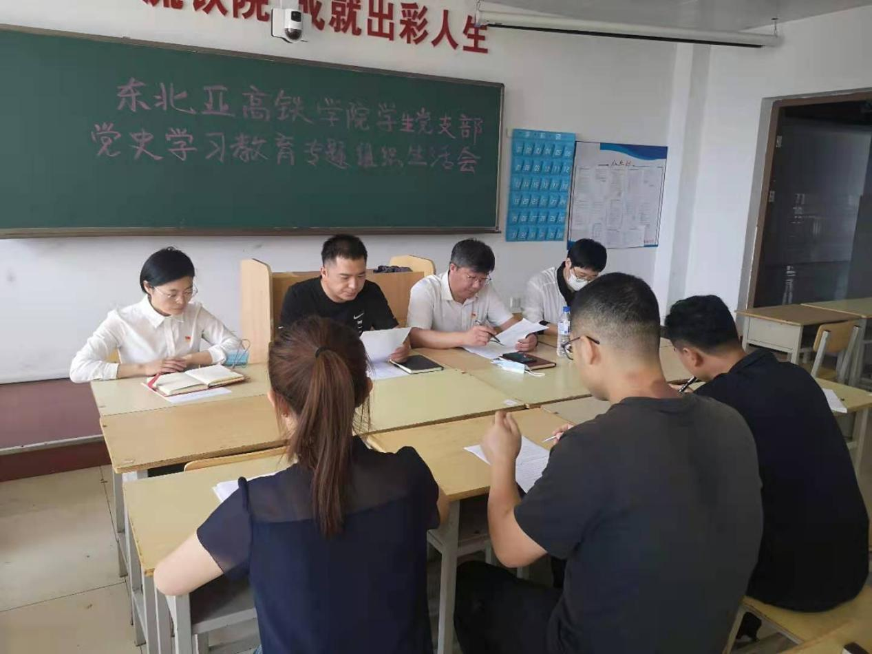 8月27日,东北亚高铁学院党总支学生党支部在教学楼415教室召开党史学习教育专题组织生活会。学生党支部成员参会,院长段金辉受学校党委指派到会督导,会议由学生党支部书记张强主持。