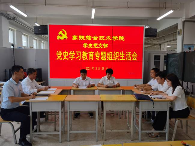 按照《中共吉林铁道职业技术学院委员会2021年党史学习教育专题组织生活会的方案》要求,2021年8月23日下午,高铁综合技术学院学生党支部在二号实训楼召开了2021年党史学习教育专题组织生活会,会议由学生党支部书记李佰玲主持,全体党员参加,产教融合中心主任、高铁综合技术学院院长莫建国受党委指派对会议进行督导。