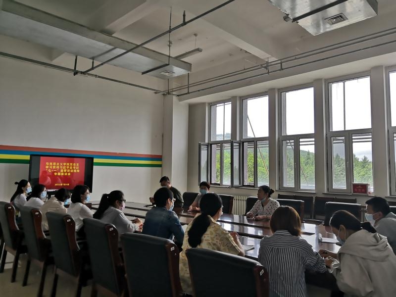 7月1日上午,马克思主义学院党总支组织全体思政课教师在图书馆报告厅集中收看庆祝中国共产党成立100周年大会盛况,并在会后立即在图书馆三楼会议室召开学习贯彻习近平总书记“七一”重要讲话精神座谈会,掀起学习、热议习近平总书记重要讲话精神的热潮。座谈会由马克思主义学院党总支书记高丽娴主持。