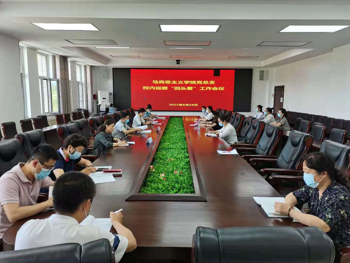 6月18日,马克思主义学院党总支校内巡察“回头看”工作会议在行政楼第二会议室召开。第一巡察组组长周环宇和巡察组工作成员出席会议。马克思主义学院党总支书记高丽娴、院长李晓平、院长助理金宇,以及全体思政课教师参加会议。会议由李晓平同志主持。