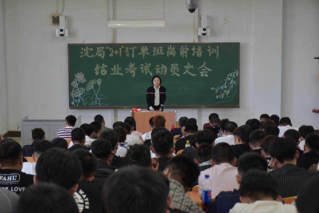为进一步提升沈局“2+1”订单班学员的学习意识,增强学员们复习紧迫感,为即将到来的岗前培训结业考试做好充足的准备,6月7日,东北亚高铁学院在教学楼东阶梯401教室召开了沈局“2+1”订单班岗前培训结业考试动员大会。东北亚高铁学院党总支副书记于威、院长段金辉、学办主任张强、辅导员郭迪、2018级全体班主任以及沈局“2+1”订单班176名学员参加了本次会议。