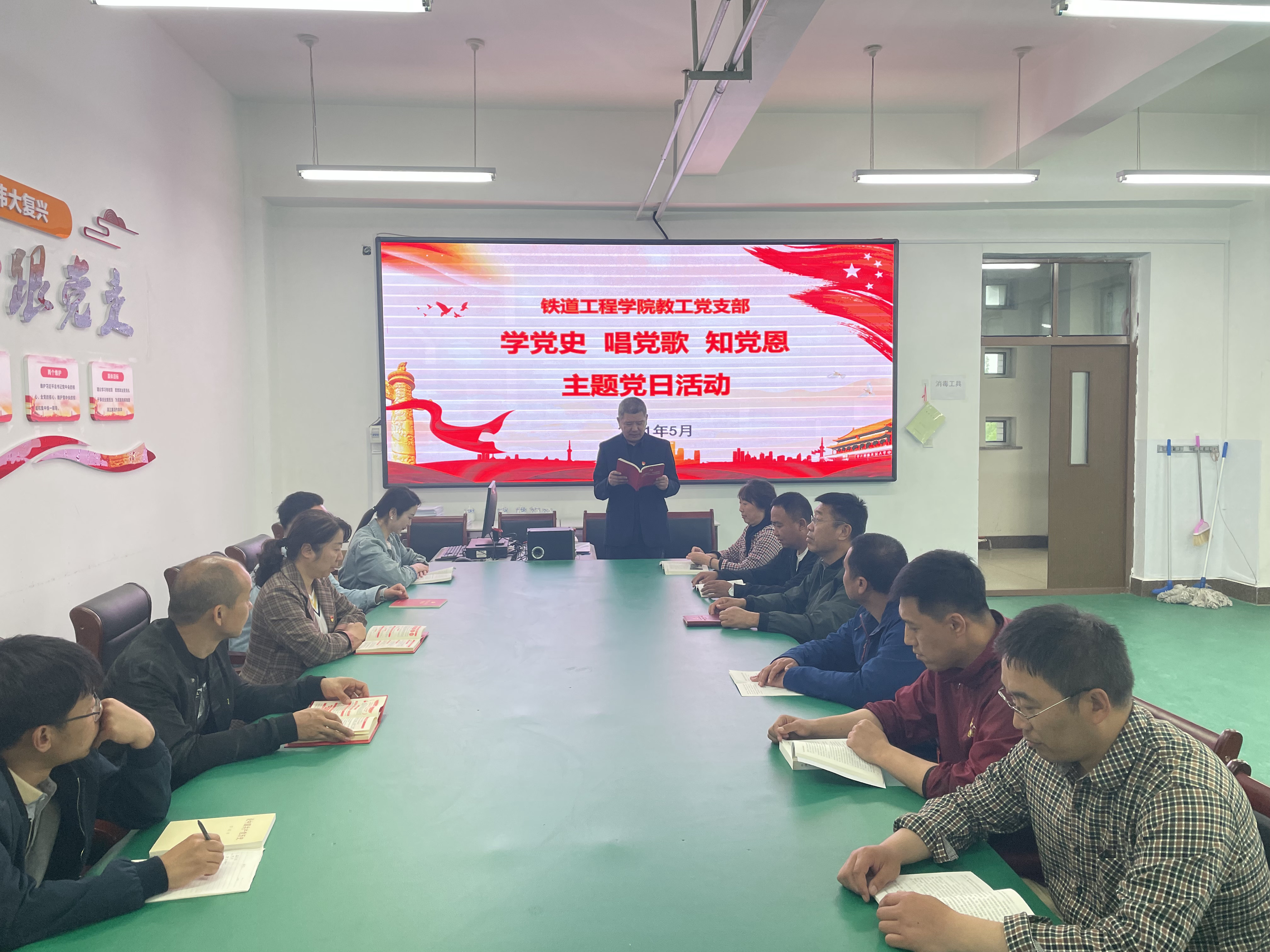 为推动党史学习教育工作扎实开展,5月31日中午,铁道工程学院教工党支部在实训楼2号楼开展“学党史、唱党歌、知党恩”主题党日活动。活动由教工党支部书记徐光华主持,全体党员参加。