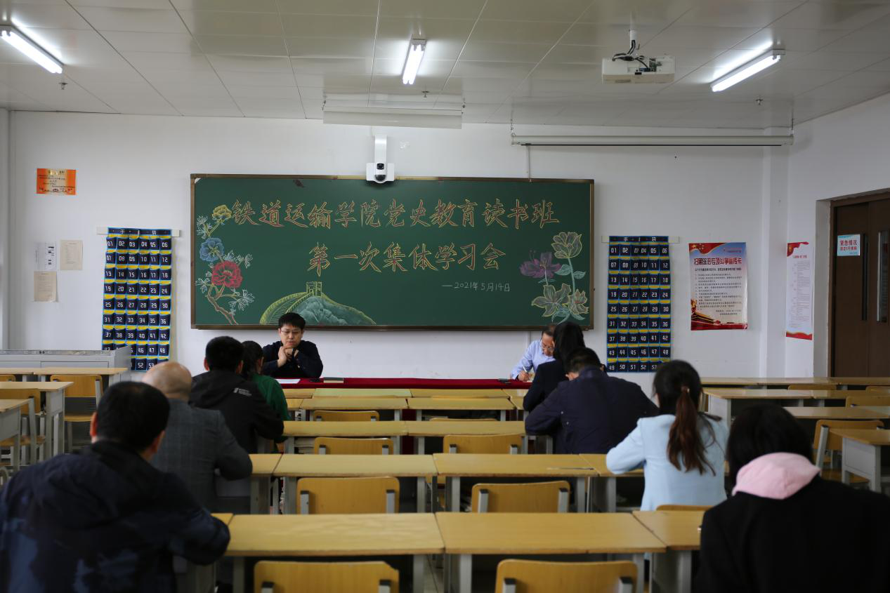 5月11日,铁道运输学院召开了党史教育读书班第一次集体学习会,铁道运输学院党总支委员、副科级及以上干部参会。