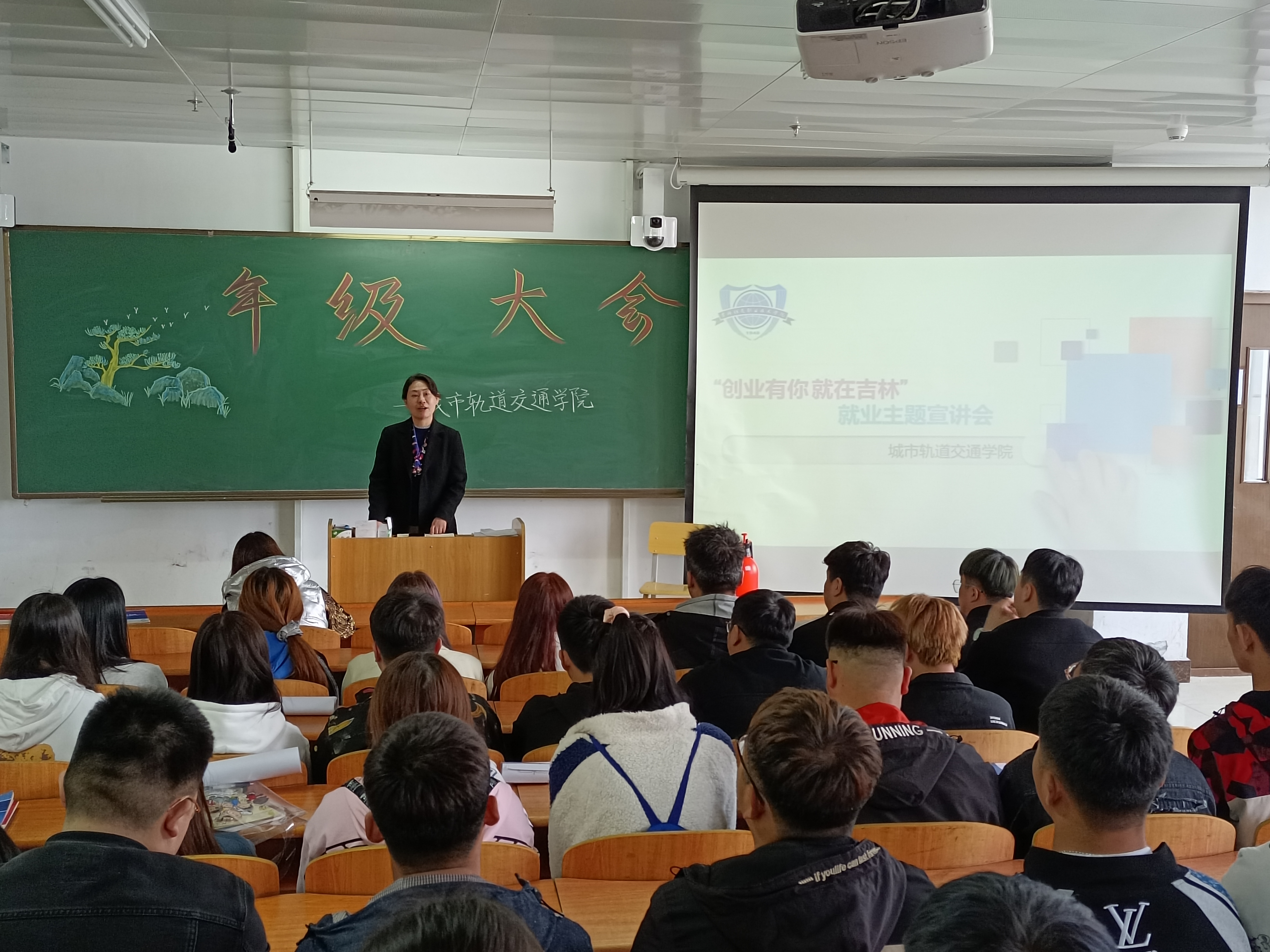 为深入贯彻落实省委书记景俊海在“创业有你 ‘就’在吉林”助力新时代吉林振兴发展宣讲报告会上的讲话精神和市委书记贺志亮5月8日在“创业有你 ‘就’在吉林”助力新时代吉林振兴发展集中宣传推介活动报告会上的讲话精神,5月10日中午,城市轨道交通学院在教学楼东202教室召开了就业宣讲会。会议由党总支书记周飞舟主持,团委书记郭馥铭,辅导员朱家林、李俊及2019级全体学生参加了此次会议。