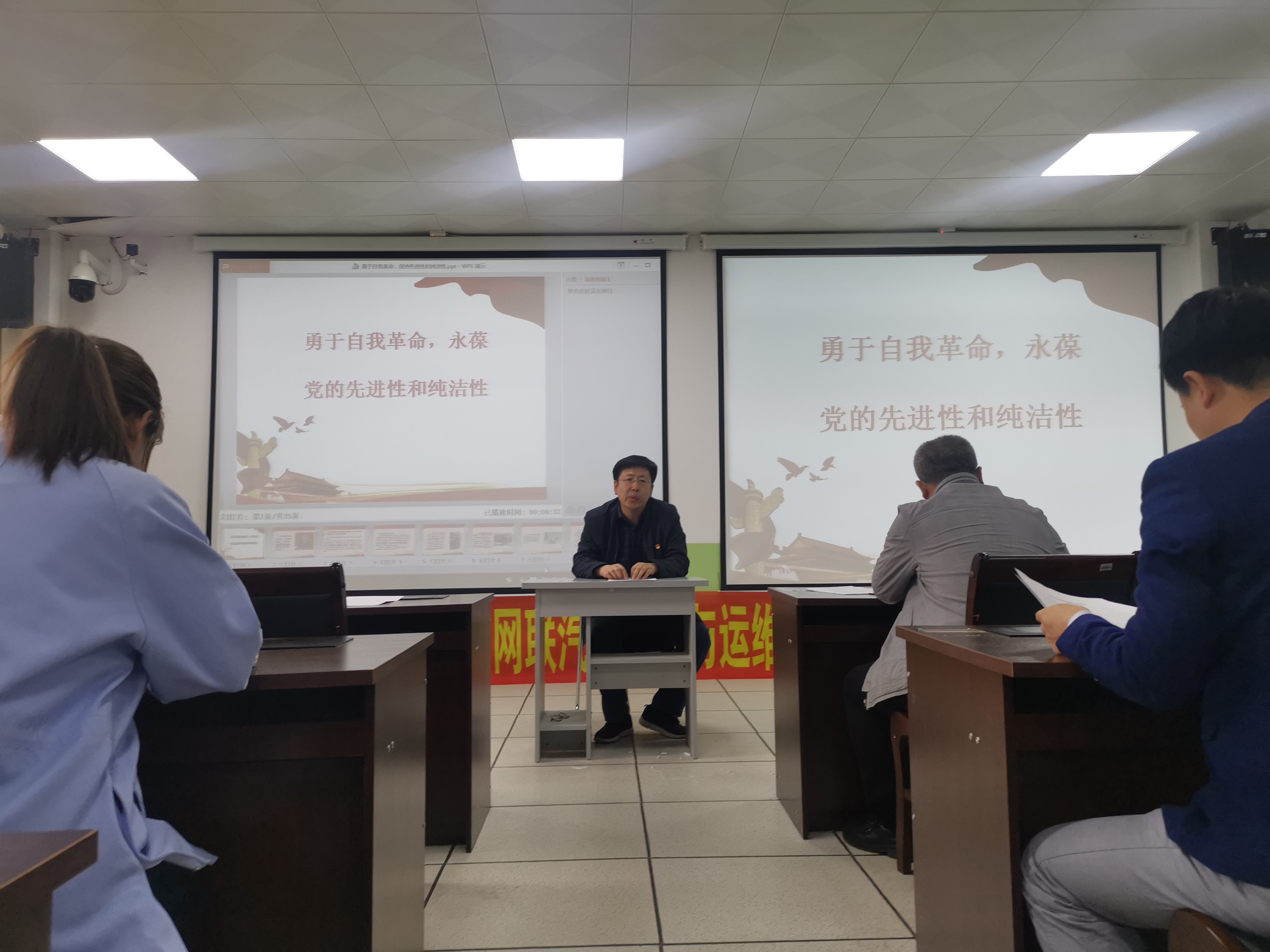 以《勇于自我革命,永葆党的先进性和纯洁性》为题,给大家上了一堂廉政党课。刘锡权和大家一起回顾了遵义会议、延安整风运动、“三反”“五反”运动、“三讲”教育、党的群众路线教育实践活动等多个党进行自我革命不断加强自身建设的事件,并从马克思主义基本原理和保持党的先进性和纯洁性三个方面进行了理论分析。