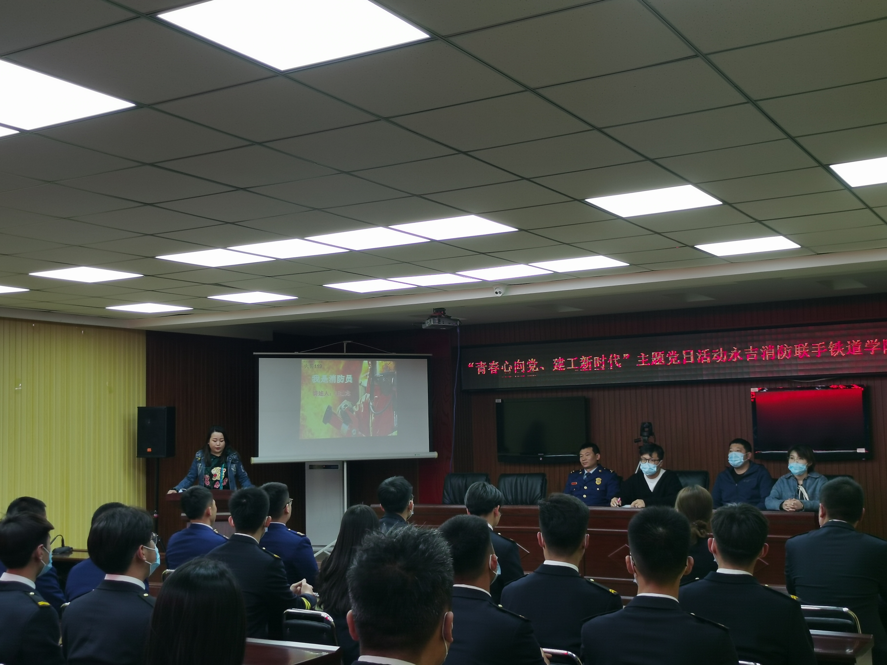 4月29日,城市轨道交通学院到永吉消防大队开展“青春心向党,建功新时代”的主题党日活动。学院团委书记郭馥铭,辅导员吴昊、李俊、朱家林以及2019级学生干部参加了此次活动。活动由李俊主持,