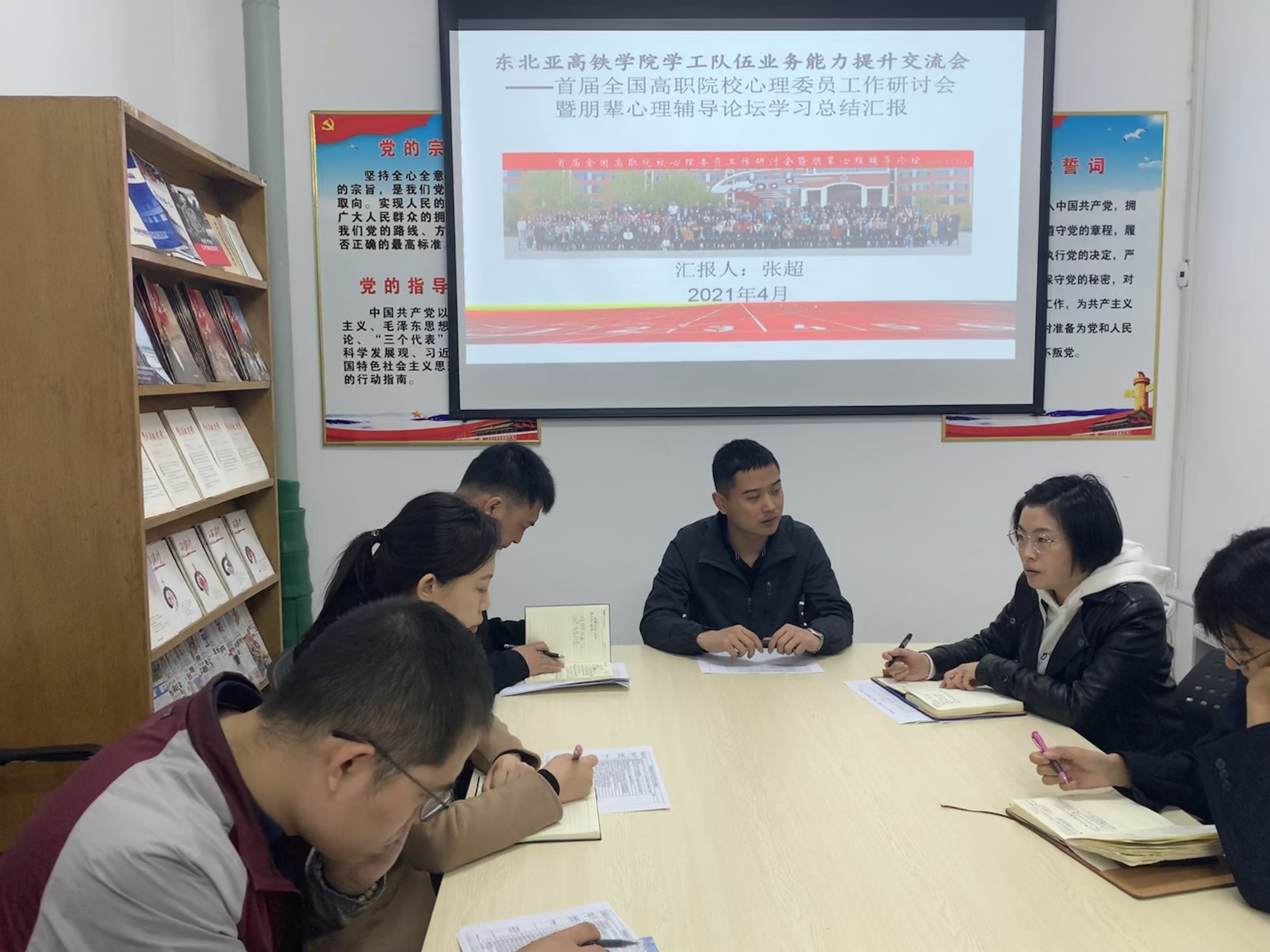 4月27日,东北亚高铁学院在教学楼303教室召开了学工队伍能力提升交流会。会议由党总支副书记于威主持,全体学工人员参加会议。