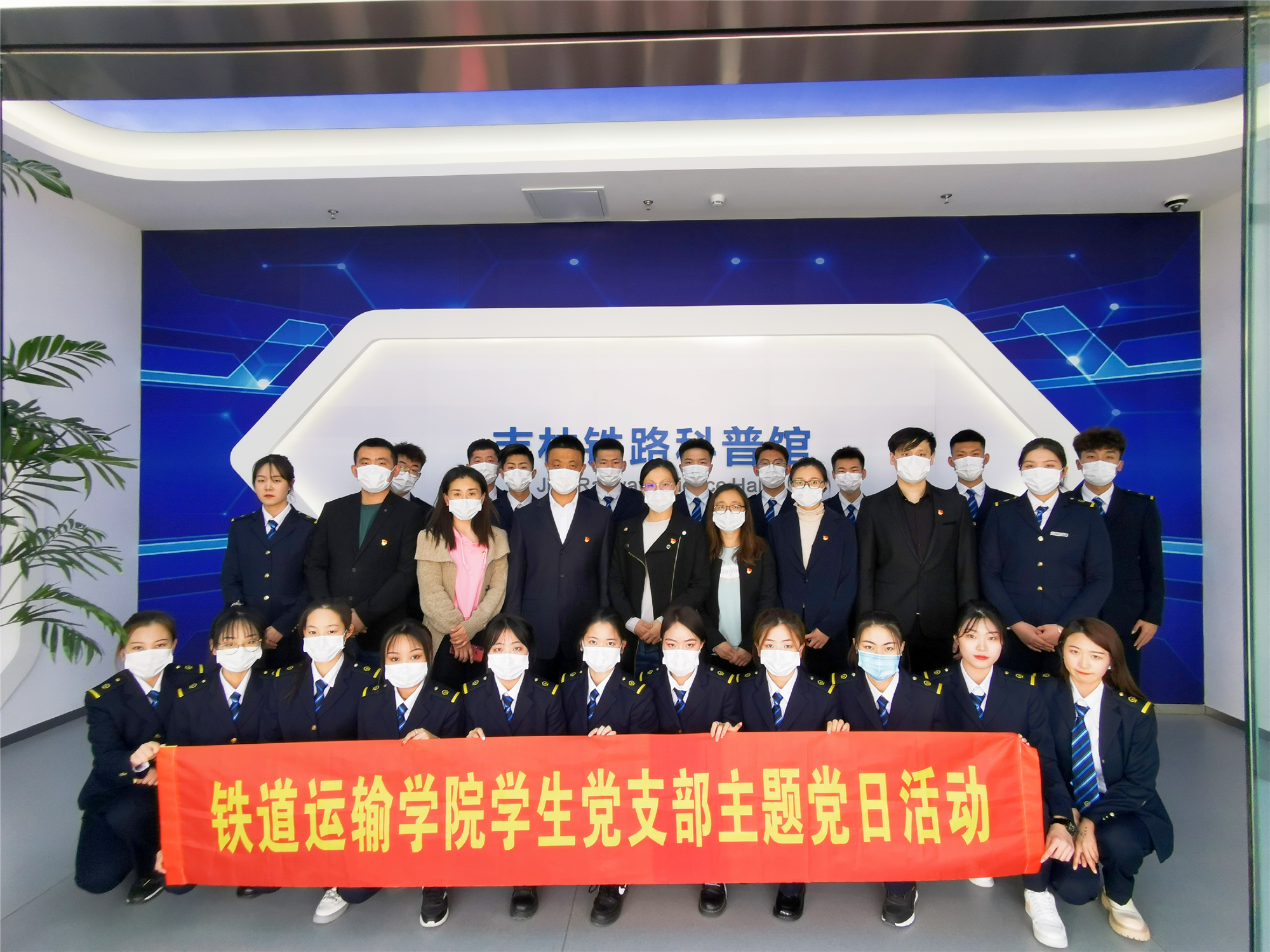 活动中,学生党支部书记孟家辉向全体人员介绍了吉林铁道职业技术学院的整体概况、历史沿革和发展历程。全体人员共同参观了吉林铁路科普馆。在吉林铁路科普馆中,大家学习中国高铁发展史的同时,体验了多个高铁模拟实验项目,参与者切身体会到祖国科技的强大。