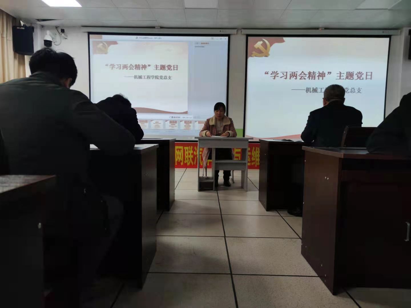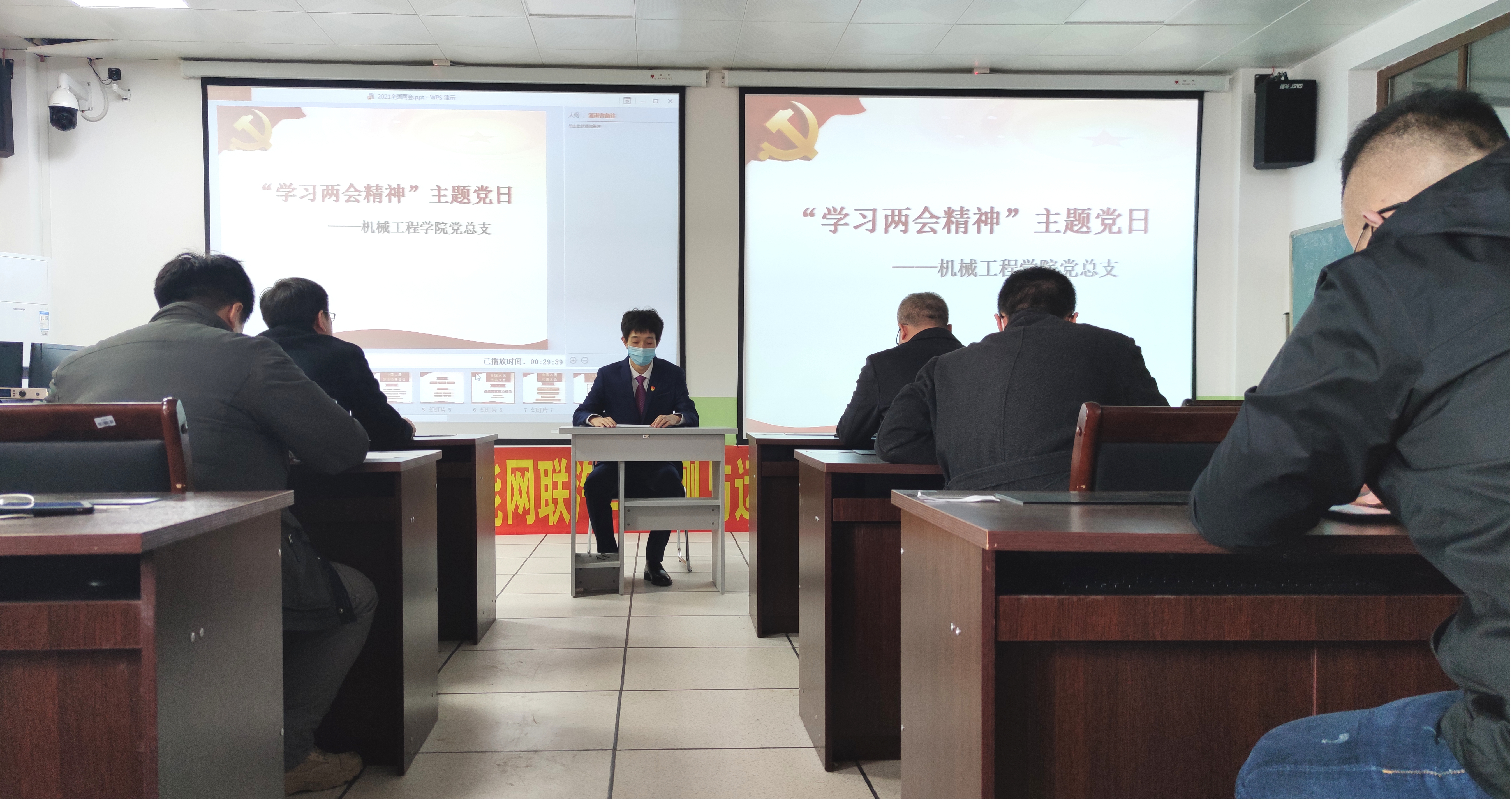 3月26日中午,机械工程学院党总支,在实训楼301开展了“学习全国两会精神”主题党日活动,活动由组织员王冲主持。