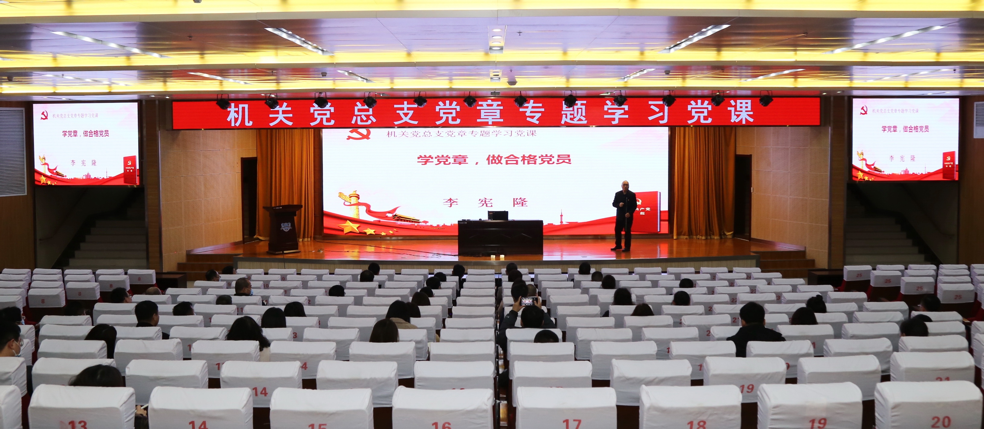 3月19日下午,为落实“巩固深化‘不忘初心、牢记使命’主题教育成果”工作要求,打牢2020年度基层党组织生活会思想基础,机关党总支在学校图书馆报告厅举办党章专题学习党课。党课由图书馆党支部书记、图书馆馆长李宪隆同志主讲。机关近60名党员参加了党课学习。