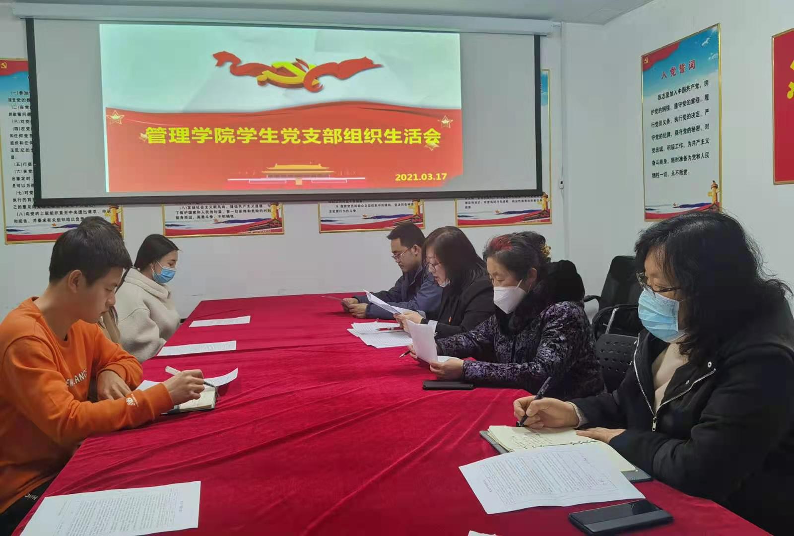 3月17日,管理学院学生党支部召开了2020年度组织生活会暨民主评议党员工作会,会前组织全体党员集中学习讨论,开展谈心谈话,并深入查摆问题。会议由学生党支部书记高露主持,管理学院院长周云凌到会做督查指导。