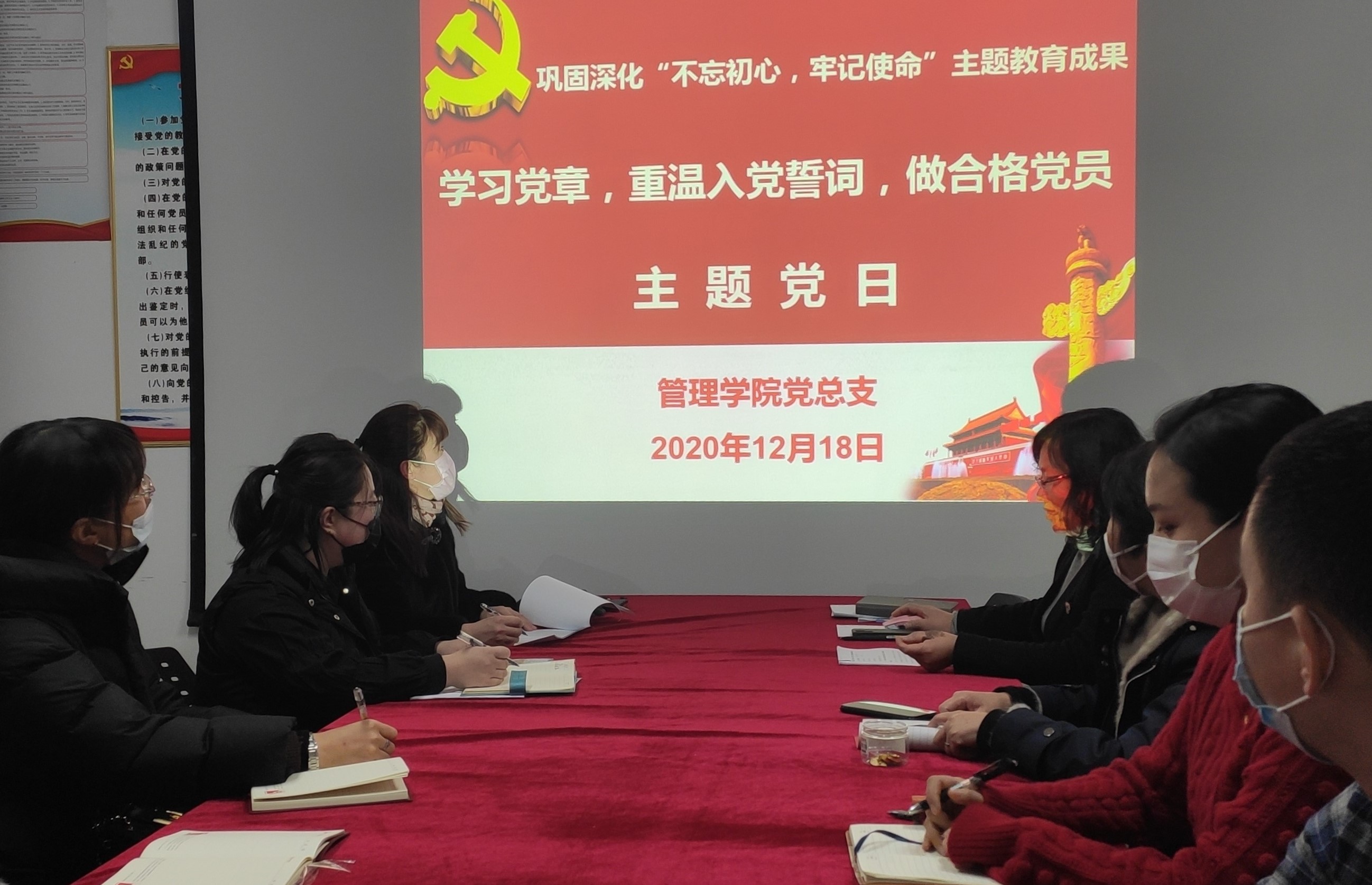 为进一步巩固深化“不忘初心、牢记使命”主题教育成果,推动主题教育形成常态化长效化,12月18日,管理学院党总支在管理学院党团活动室开展巩固深化“不忘初心、牢记使命”主题教育成果主题党日活动,总支全体党员参加活动,此次党日活动由管理学院党总支书记杨秀主持。