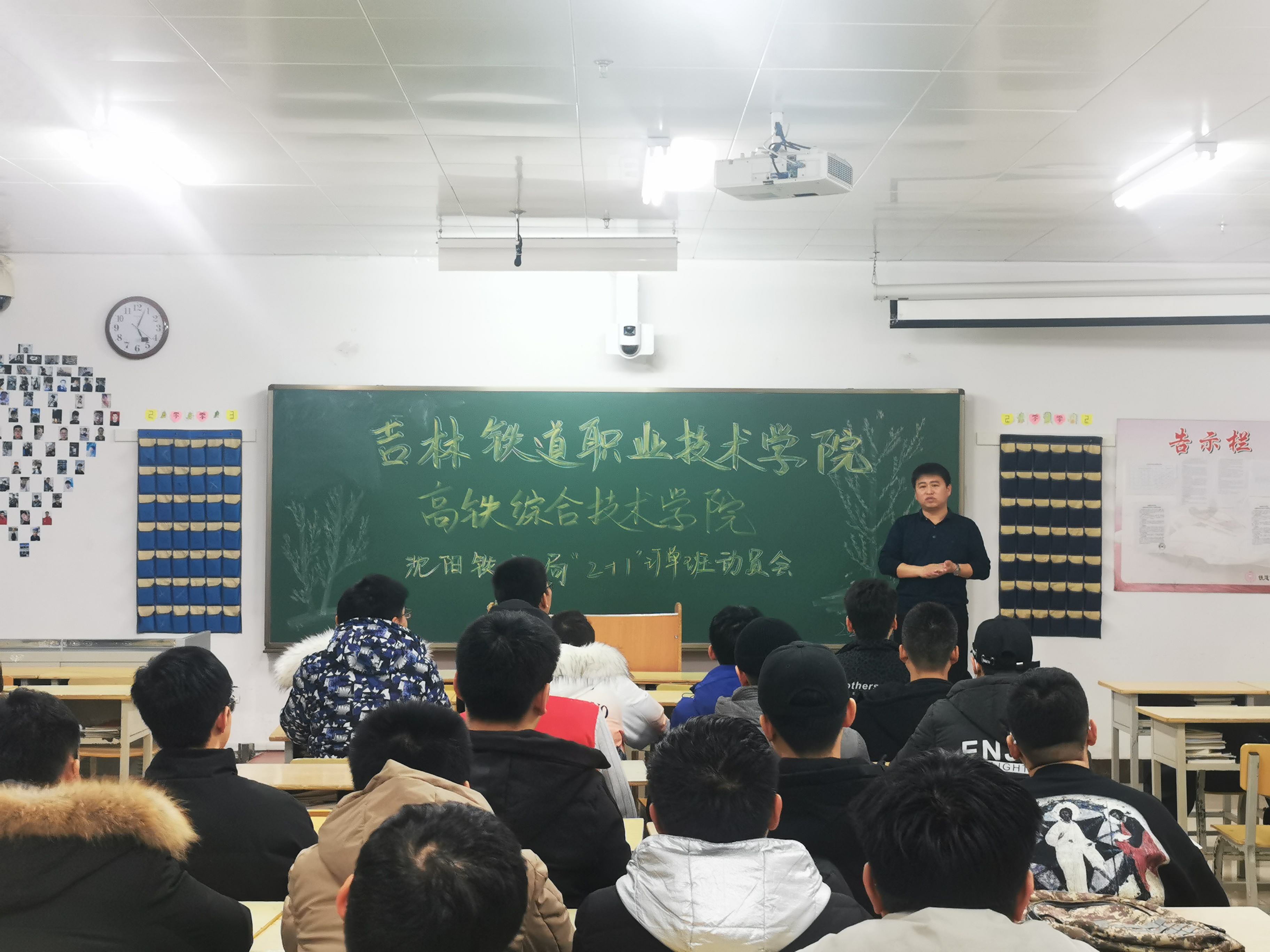 根据《沈阳铁路局集团公司2021年高职生“2+1”定向培养方案》的要求,高铁综合技术学院于12月17日在教学楼512、513教室进行了沈阳铁路局集团“2+1”电务定向培养班开班动员会,高铁综合技术学院院长莫建国做开班动员,沈阳铁路局集团“2+1”电务定向培养班全体学员参加了会议。