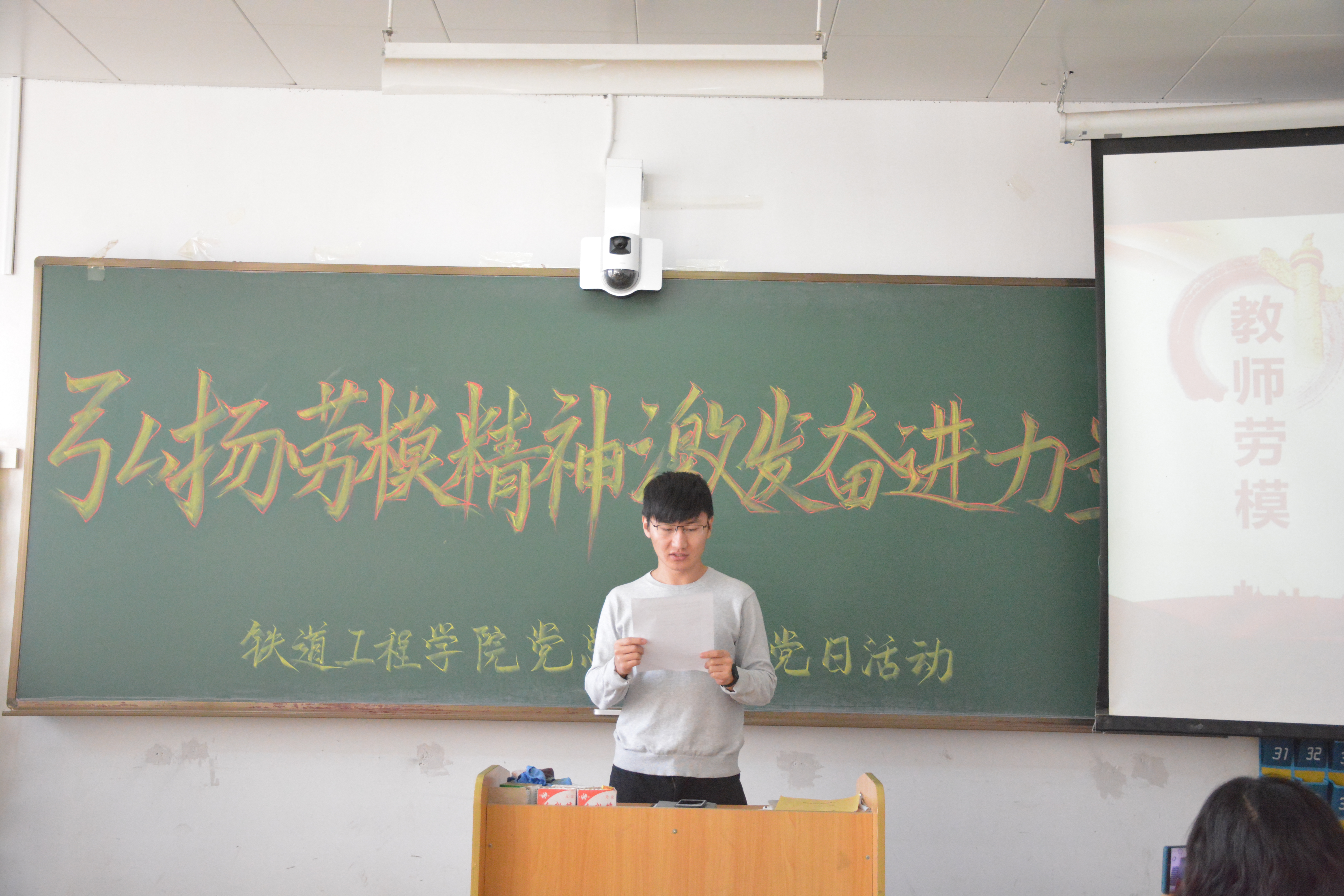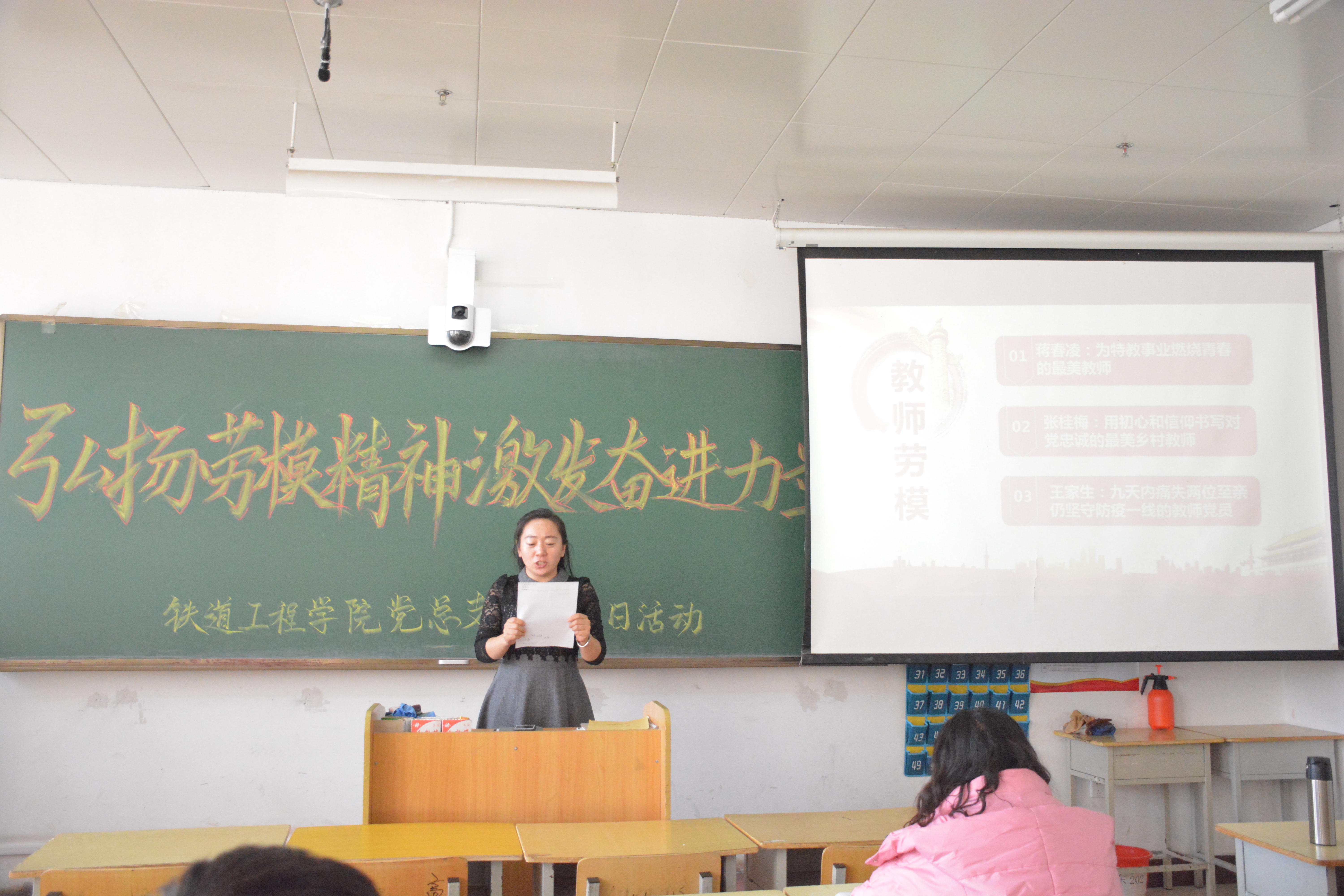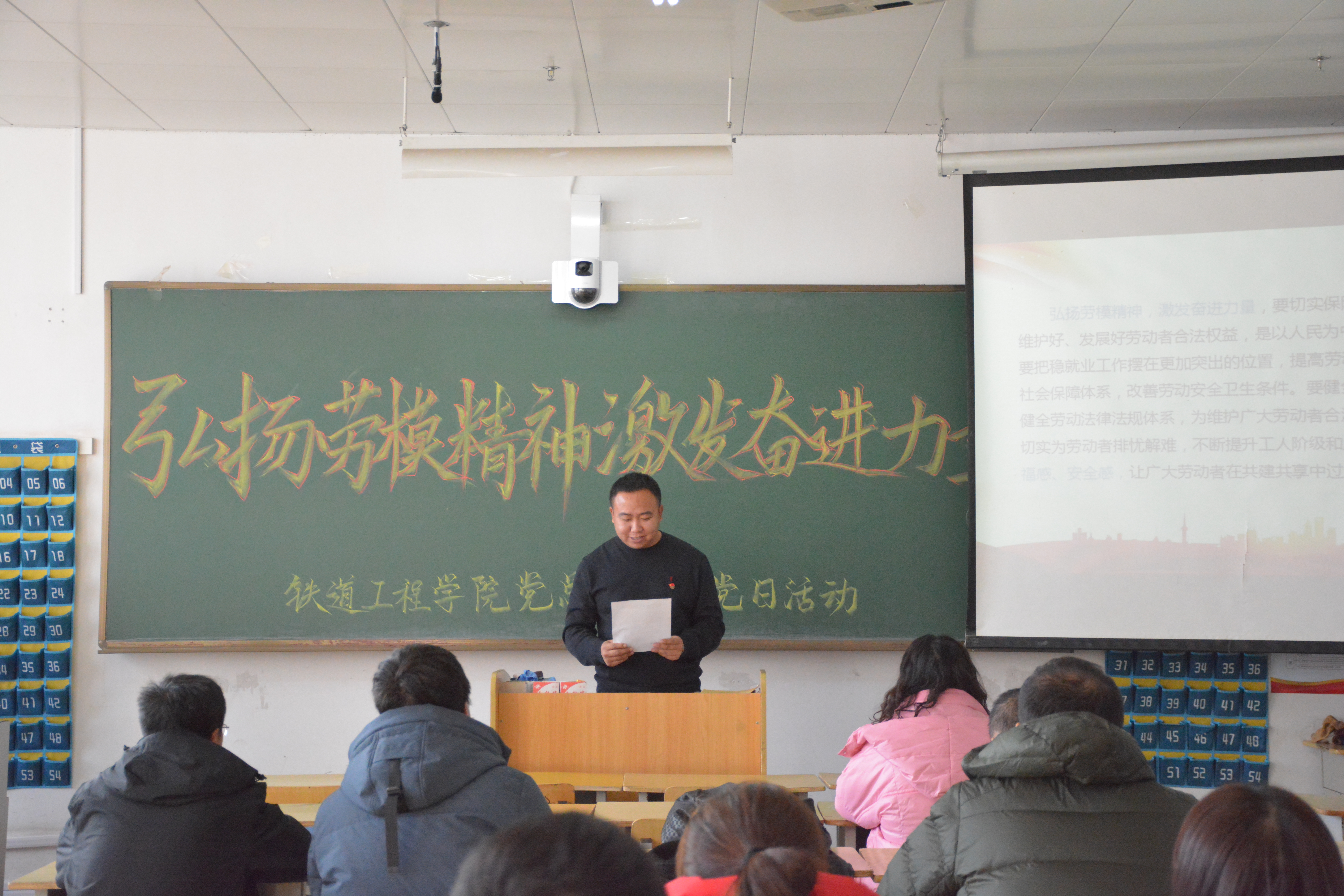 为大力弘扬劳模精神,激励全体教师立足岗位、潜心育人、争当先进,12月2日,铁道工程学院党总支开展“弘扬劳模精神 激发奋进力量”主题党日活动。活动由党总支书记韩兵兵主持,全体教师党员参加了活动。