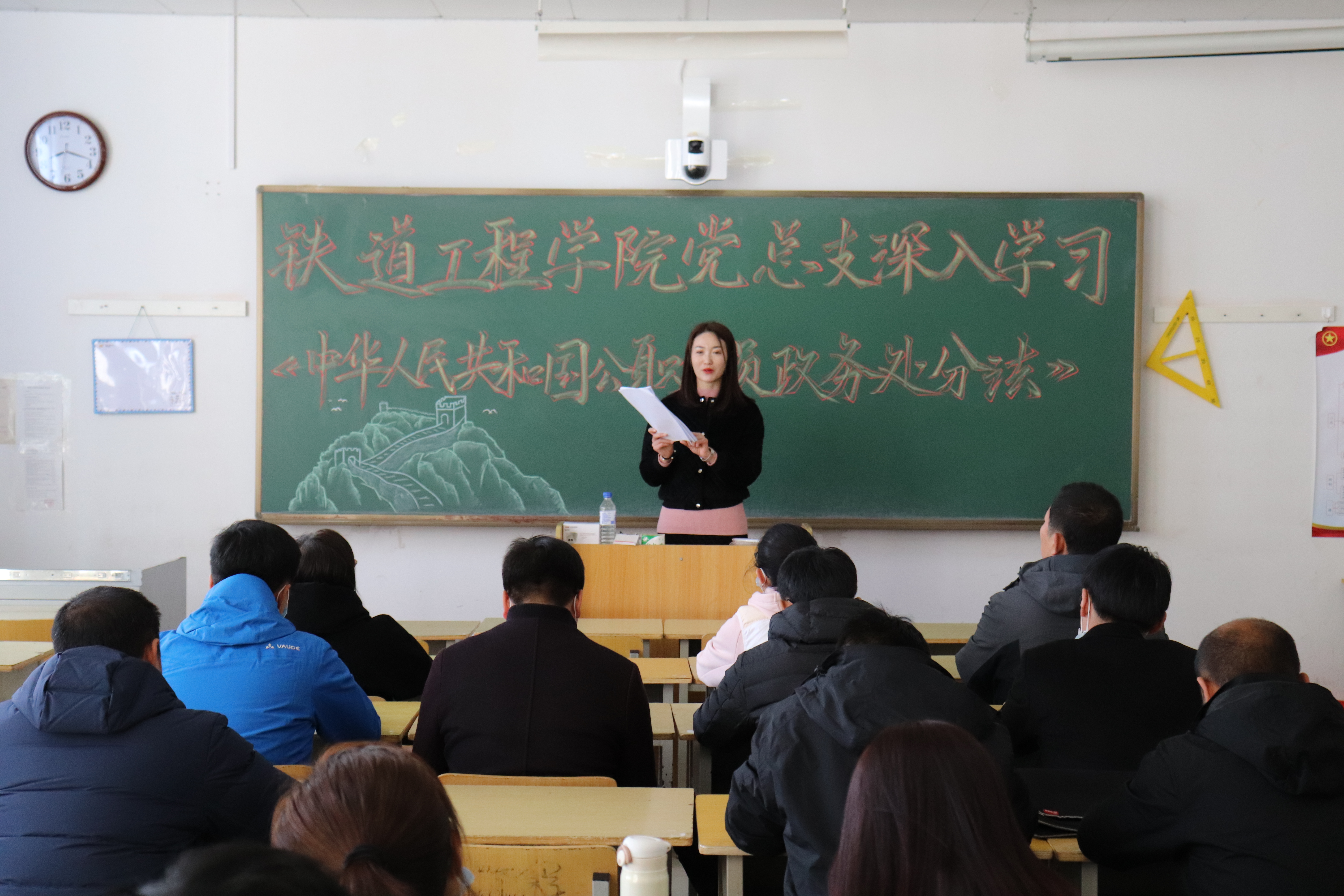 为进一步贯彻落实学校纪委文件要求,加强全体教师对《中华人民共和国公职人员政务处分法》以下简称(《政务处分法》)的学习宣传和贯彻落实工作,铁道工程学院党总支于10月22日中午在教学楼209教室召开专题学习会,会议由党总支书记韩兵兵主持。