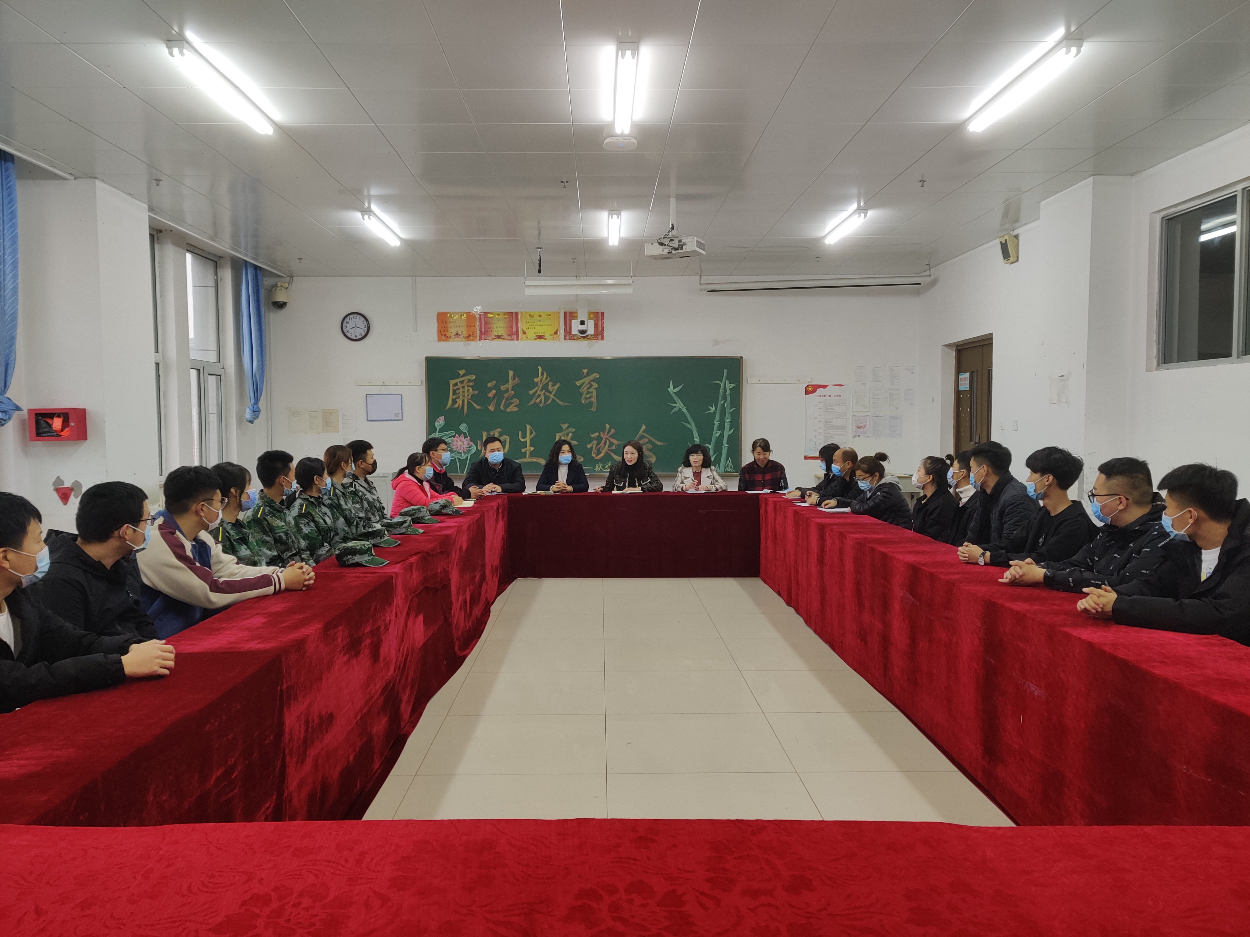 最后,韩兵兵重点强调,一是全体师生要提高认识,认清形势,高度重视党风廉政建设和反腐败工作;二是要强化责任意识,结合实际工作目标,把各项工作落到实处,切实增强工作的责任感和使命感;三是加强师德师风建设,把廉洁教育与日常教育教学活动紧密联系起来,利用党课、党日活动和班会等对师生进行廉洁教育;四是要求全体师生廉洁从政,廉洁从教,廉洁从学,持之以恒,正风肃纪,杜绝任何形式上的腐败;五是号召全体师生积极作为,保证队伍的纯洁性,自觉维护风清气正的吉铁院政治生态环境,为学校实现新一轮振兴发展做出更大的贡献。