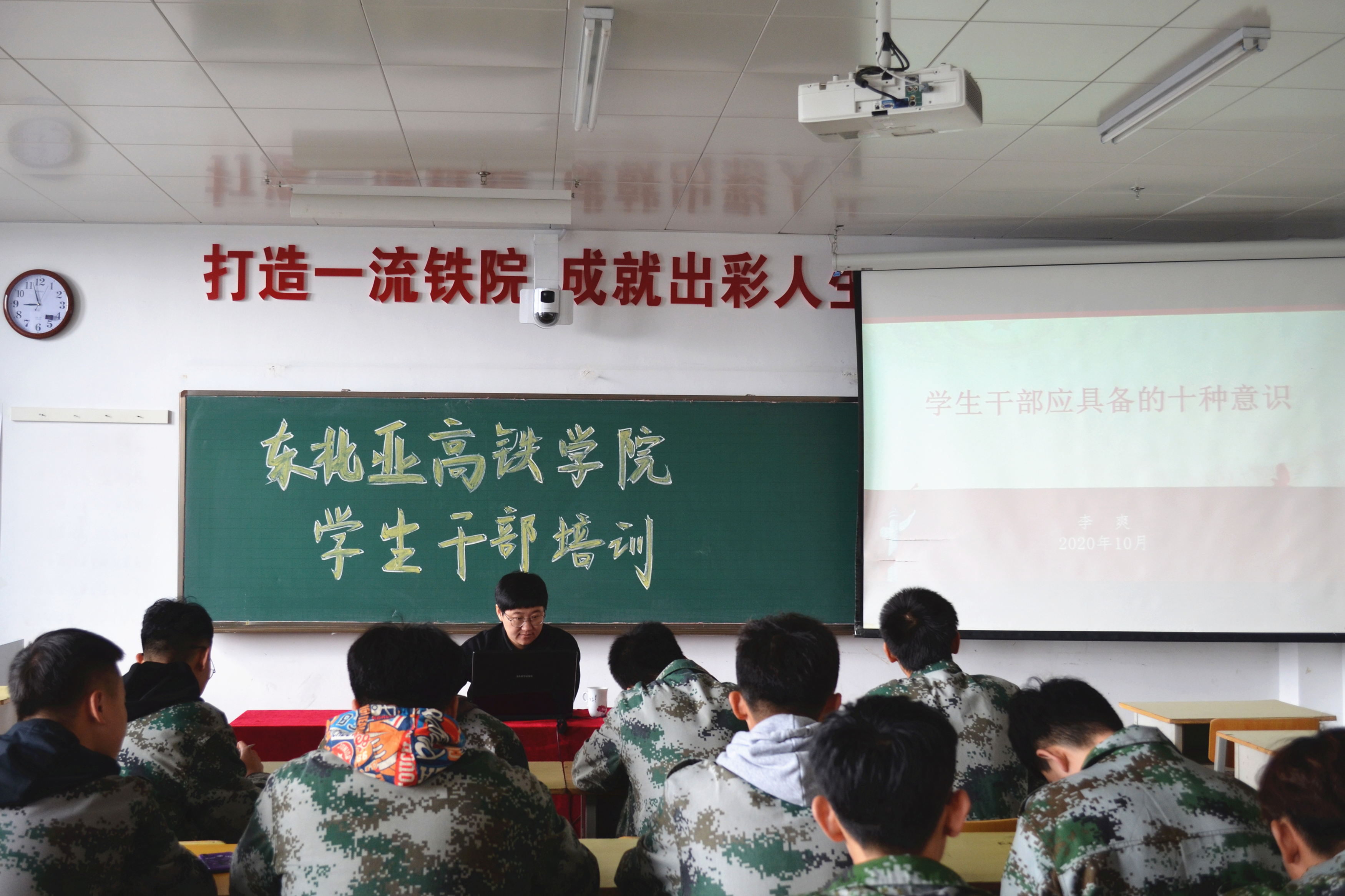 2020年7月,按照学校《关于2020年团委、学生会学生干部换届竞聘通知》要求,东北亚高铁学院通过公开竞聘组建了东北亚高铁学院第一届团委、学生会组织。为了加强学生干部队伍建设,切实提高学生干部的综合素质和业务能力,进而提升学生管理与服务工作水平,学院于10月1日至3日举行了为期三天的“东北亚高铁学院第一届学生干部培训”。培训设有素质拓展训练、理论培训、内务整理实操三个环节。