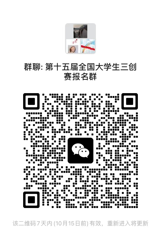 请各位老师和同学仔细阅读比赛通知内容及要求,有报名意愿的团队及个人请于2024年10月13日前扫描下方群二维码进入三创赛比赛群,后续比赛消息会在群内进行通知。