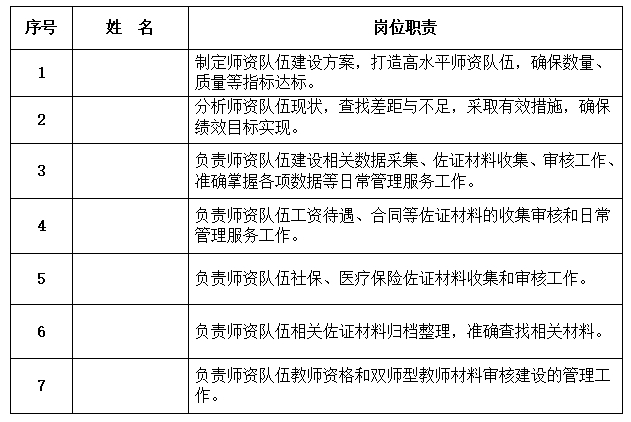 创本办现面向全校教职工公开征集创建职业本科大学申报“师资队伍建设项目工作组”成员,具体岗位职责见表。
