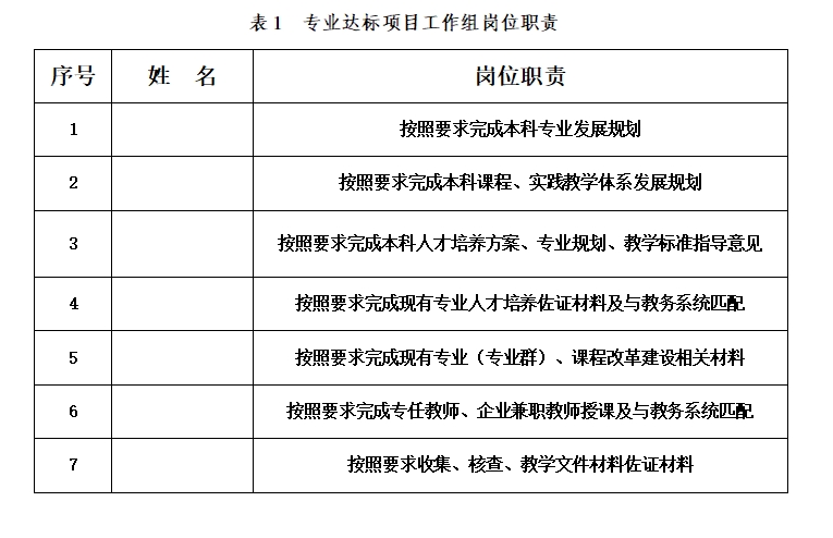 教务处(教师发展中心)现面向全校教职工公开征集创建职业本科大学“专业达标项目工作组”成员,具体岗位职责见表1。