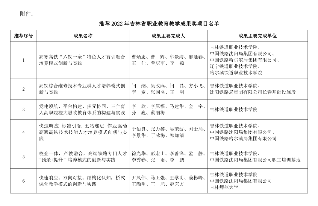 附件:推荐2022年吉林省职业教育教学成果奖项目名单