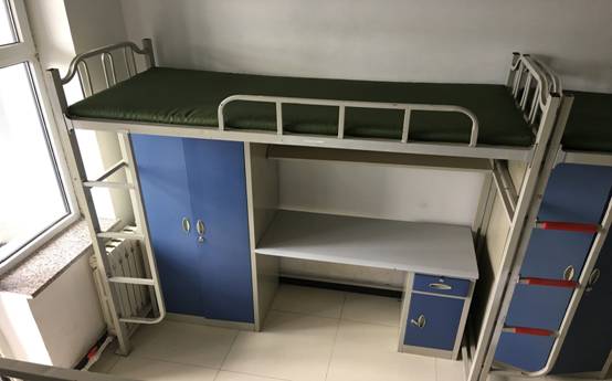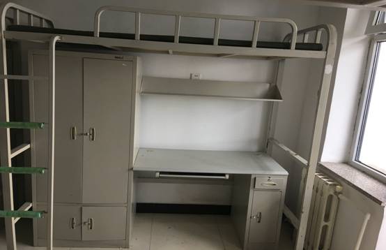 该批公寓床系于2010年左右购置,钢结构床架,上层为床铺,下层为学习桌,每套公寓床均有1个衣柜,现状态完好,能够继续使用。