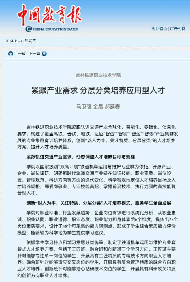 10月9日,【中国教育报】以“紧跟产业需求 分层分类培养应用型人才”为题对我校进行了报道。