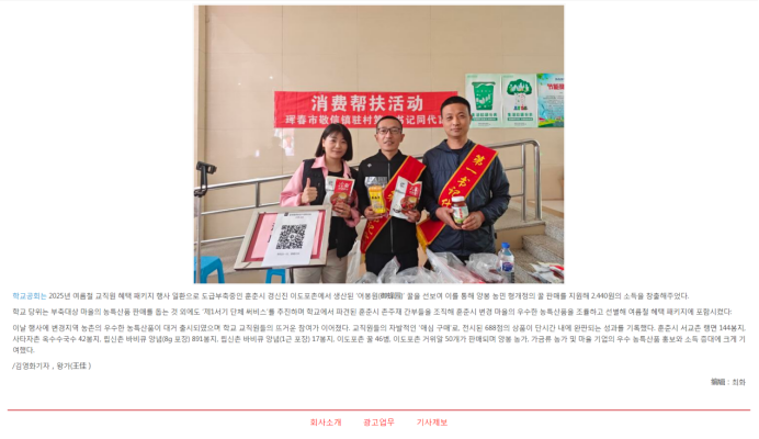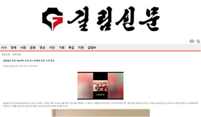 6月25日,【吉林朝鲜文报】以“吉林铁道职业技术大学:校内展销 助力村民增收”为题对我校夏季惠师暖心活动进行了报道。