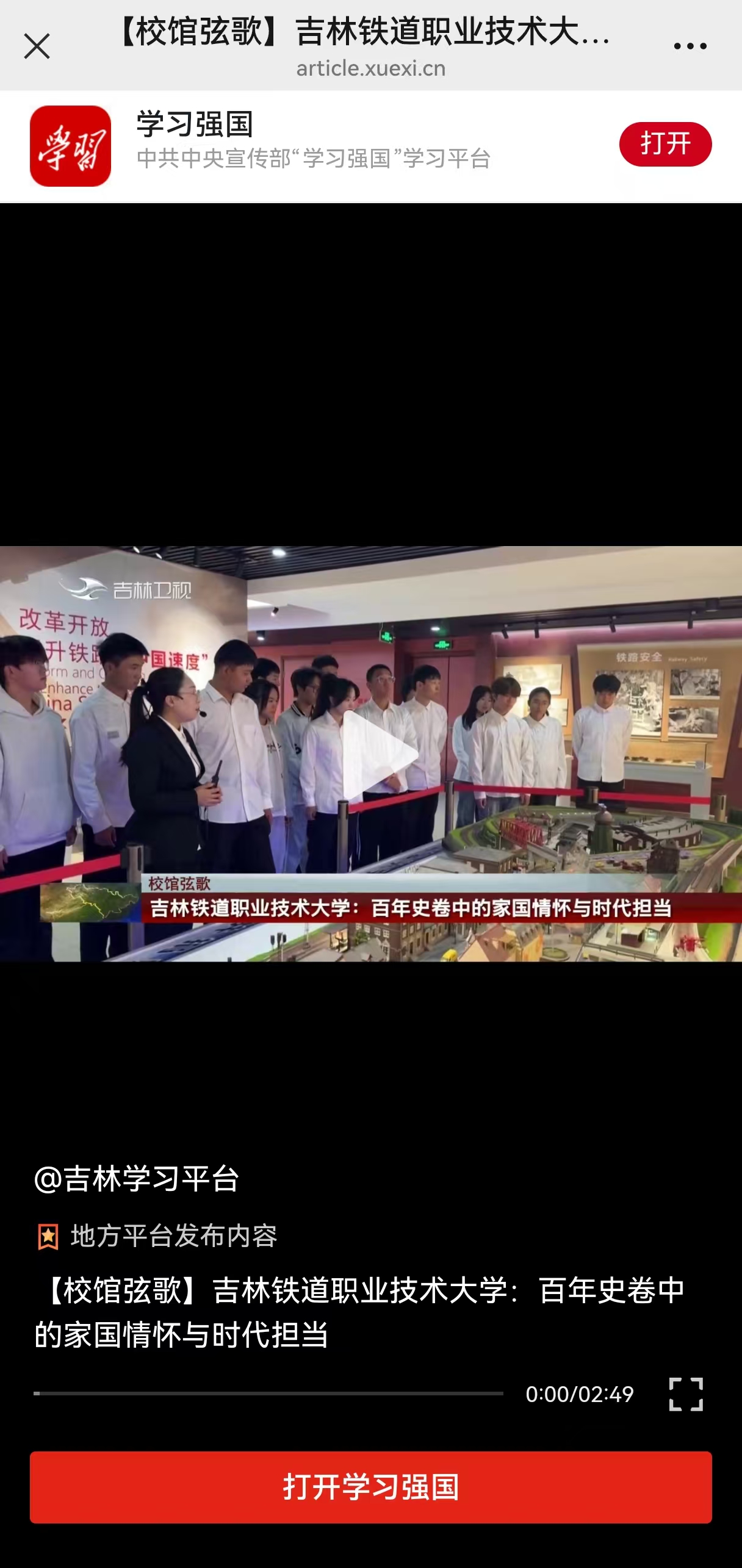 11月17日,【学习强国】以“[校史弦歌]吉林铁道职业技术大学:百年史卷中的家国情怀与时代担当”为题,对我校进行了报道。