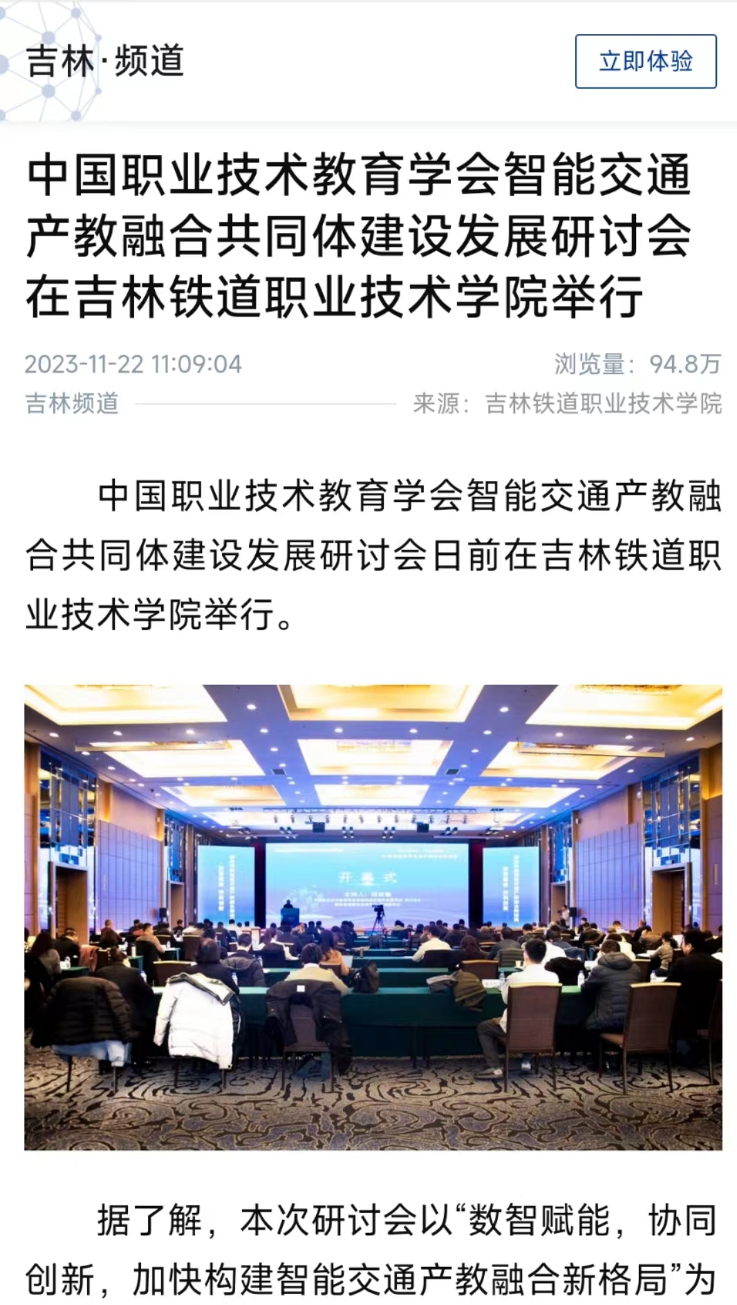 11月22日,【新华网】“吉林频道”以“中国职业技术教育学会智能交通产教融合共同体建设发展研讨会在吉林铁道职业技术学院举行”为题对我校进行了报道。
