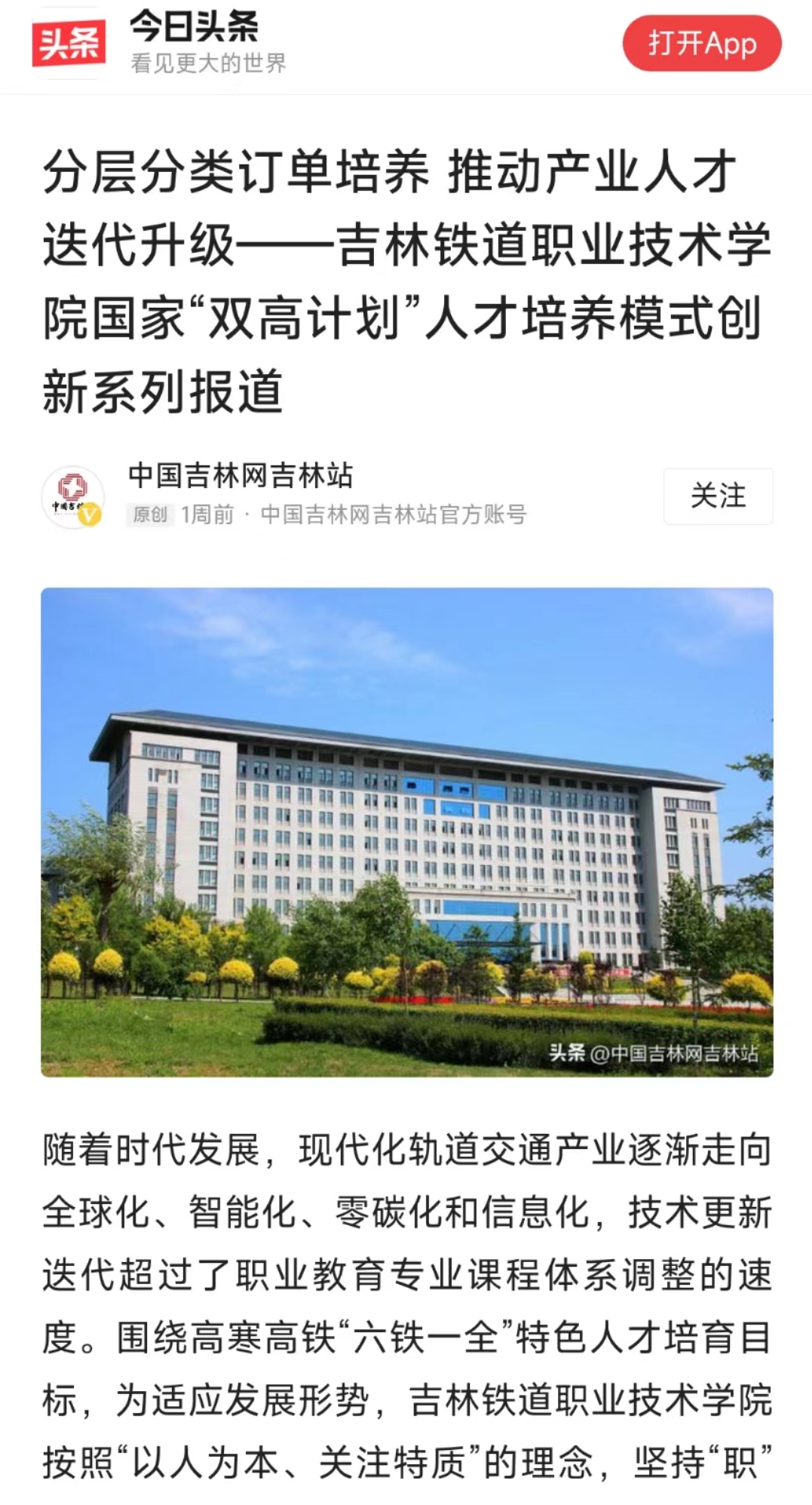 11月1日,【中国吉林网】以“分层分类订单培养 推动产业人才迭代升级”为题对我校进行了报道。