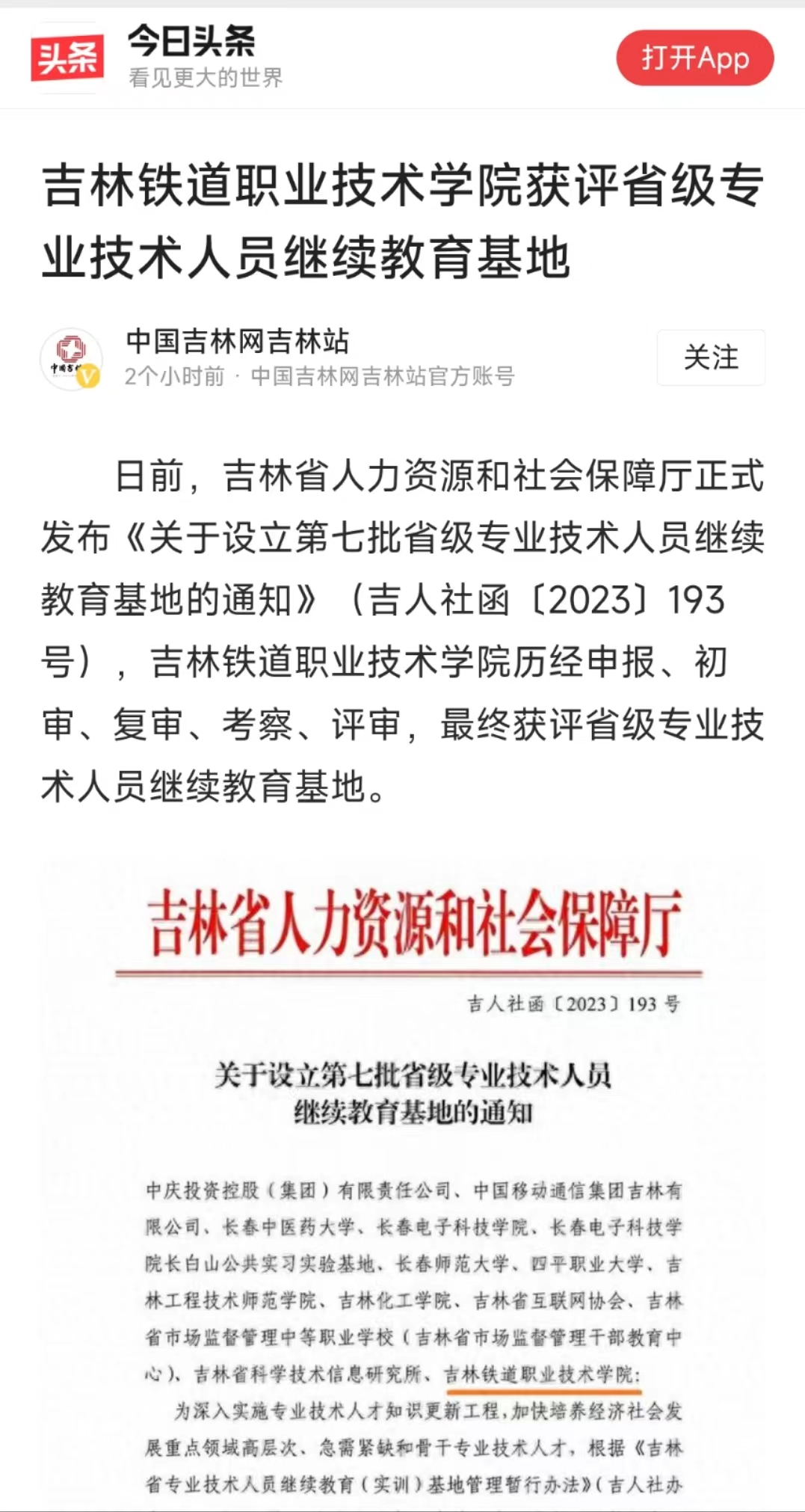 10月18日,【中国吉林网吉林站】以“吉林铁道职业技术学院获评省级专业技术人员继续教育基地”为题对我校进行了报道。