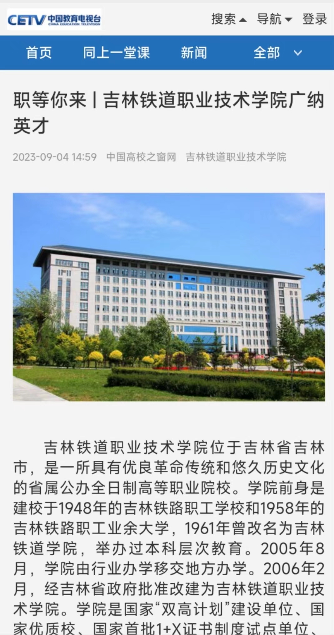 【CETV中国教育电视台】职等你来 | 吉林铁道职业技术学院广纳英才