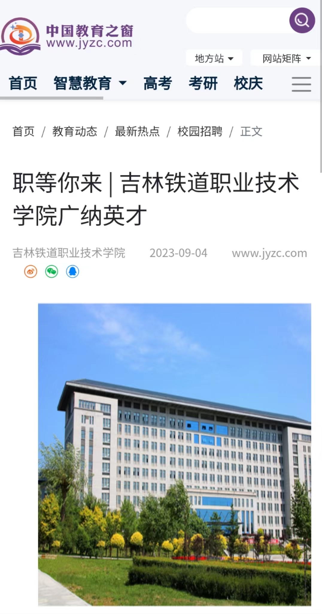 【中国教育之窗】职等你来 | 吉林铁道职业技术学院广纳英才