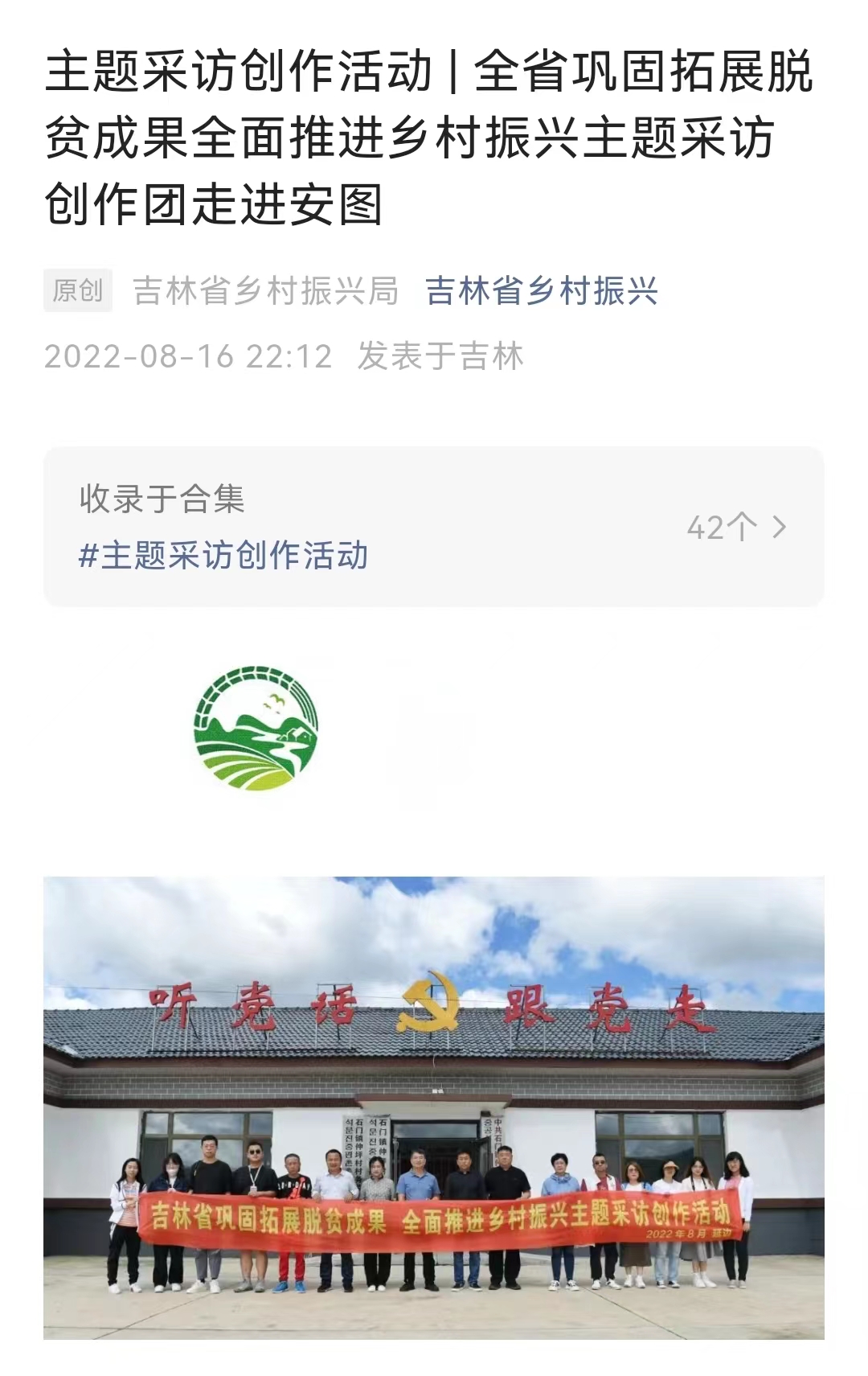 8月16日,【吉林省乡村振兴】“吉林省乡村振兴”微信公众号以“题采访创作活动 | 全省巩固拓展脱贫成果全面推进乡村振兴主题采访创作团走进安图”为题对我校进行了报道。
