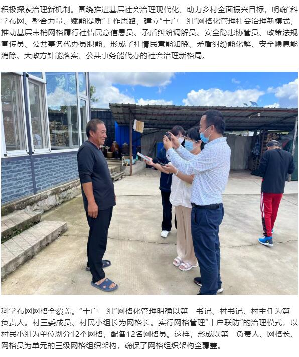 2022年8月16日,省乡村振兴采访创作团到我校包保帮扶村仲坪村开展采访创作活动。对仲坪村在推动综合治理工作中,实行“十户一组”网格化管理新模式,提升乡村治理水平,推进乡村振兴工作的情况进行了深入采访报道。