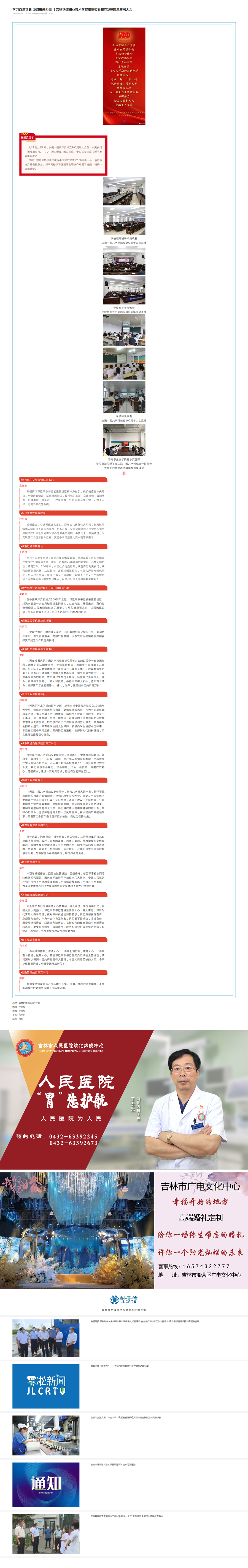 7月2日,【吉林市广播电视台】官方客户端吉林雾凇台以“学习百年党史 汲取奋进力量 丨吉林铁道职业技术学院组织收看建党100周年庆祝大会”为题对我校学校干部师生热议庆祝中国共产党成立100周年大会盛况和习近平总书记重要讲话精神进行了报道。