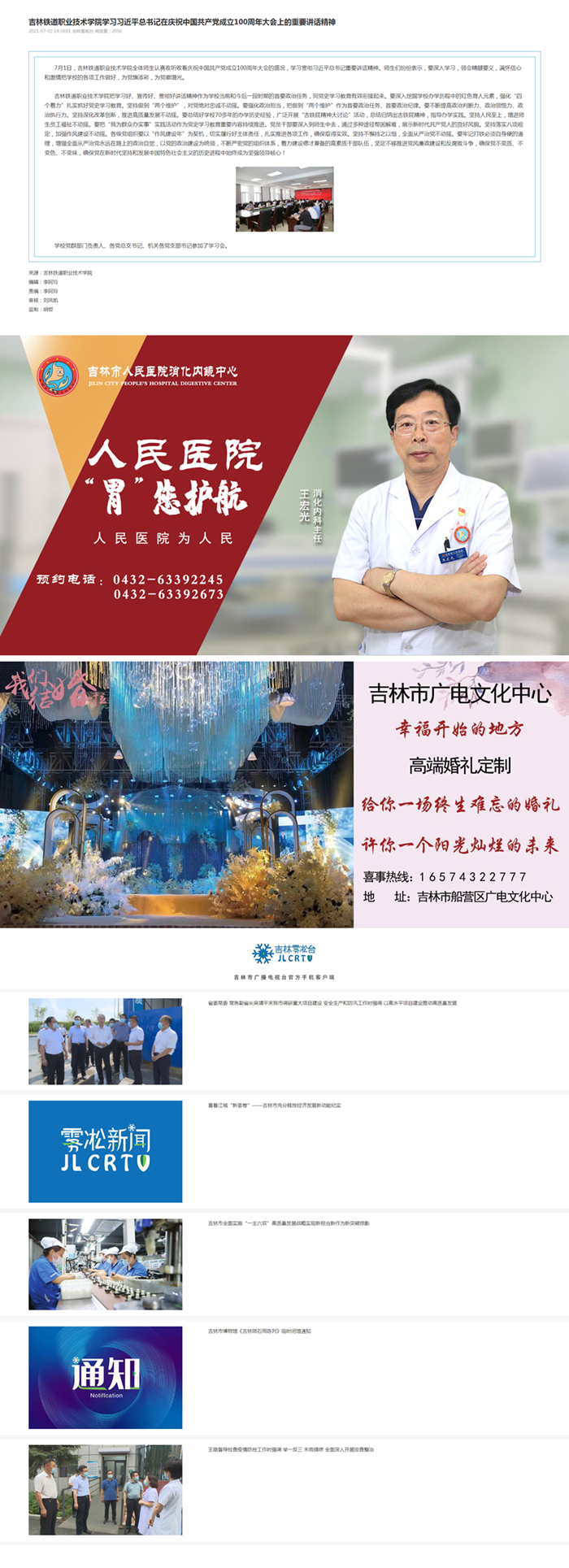 7月2日,【吉林市广播电视台】官方客户端吉林雾凇台以“吉林铁道职业技术学院学习习近平总书记在庆祝中国共产党成立100周年大会上的重要讲话精神”为题对我校全体师生认真收听收看庆祝中国共产党成立100周年大会的盛况,学习贯彻习近平总书记重要讲话精神进行了报道。
