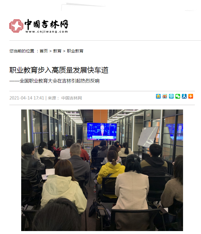 4月14日,【中国吉林网】以“职业教育步入高质量发展快车道——全国职业教育大会在吉林引起热烈反响”为题对吉林省职业教育界师生反响进行了报道,我校党委副书记、校长曹炳志畅谈对“全国职业教育大会”的感想。